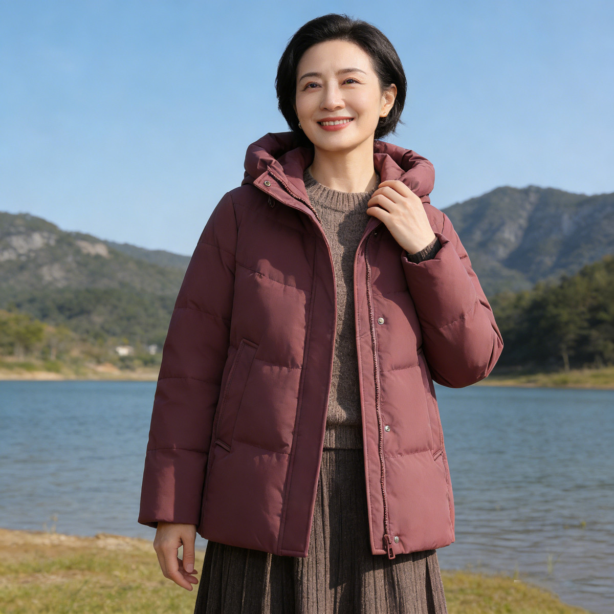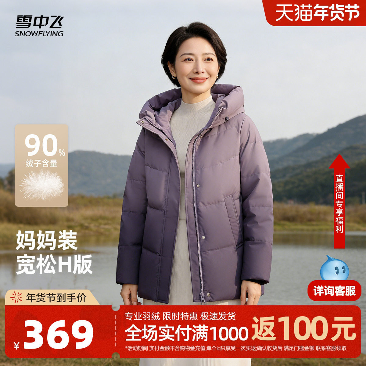 📚 雪中飞2026春新款女妈妈款羽绒服短款连帽温柔豆沙色简约百搭暖
