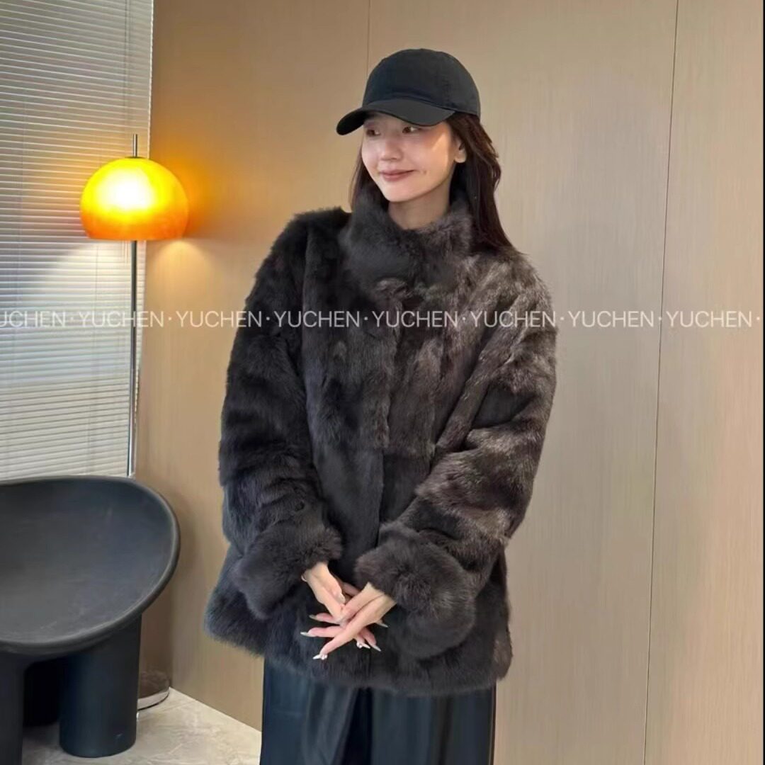 📚 反季福利爆款兔毛皮草外套女中长款兔毛皮毛一体宽松时尚大衣秋冬