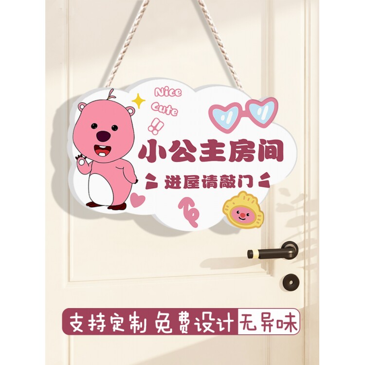 📚 进屋请敲门挂牌提示牌贴纸可爱卡通进门请敲门房间门牌学生小公主女孩男孩儿童房卧室休息中学习请勿打扰创意