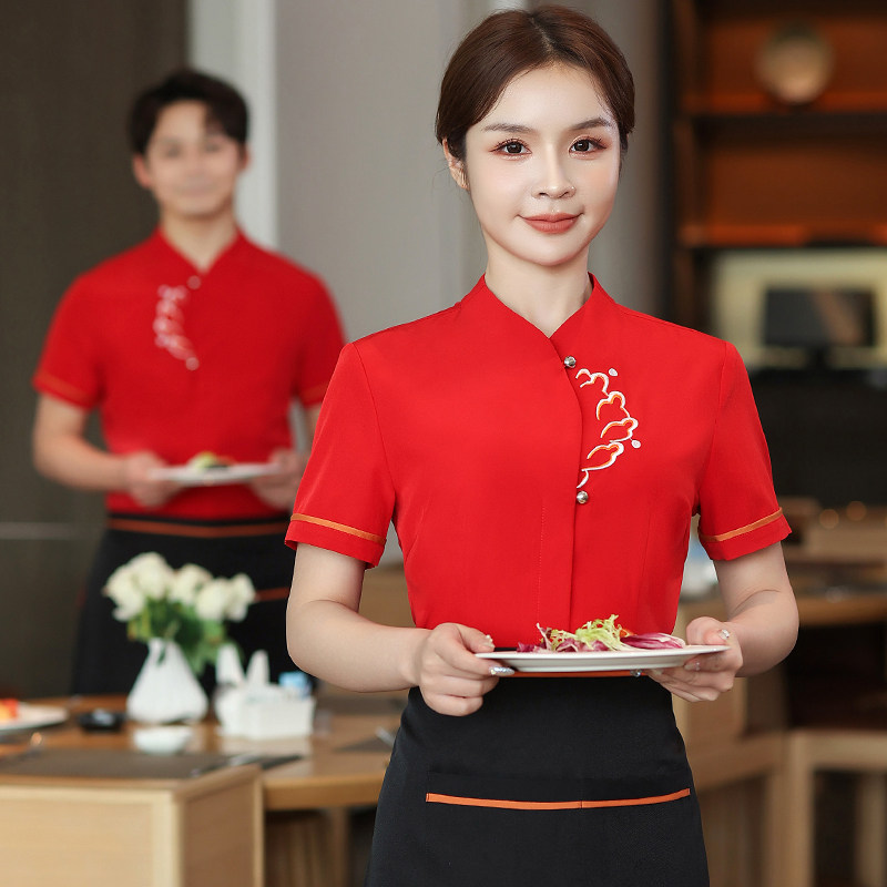 📚 服务员工作服短袖高端中式酒店中餐厅餐饮前厅饭店茶楼服装夏装女