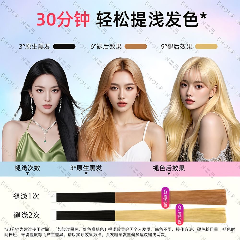 📚 首品褪色粉漂发剂白金色染发剂去黄洗发水漂粉漂白染发膏头发退色