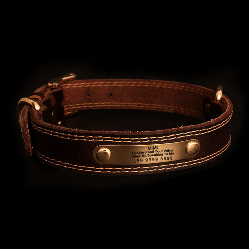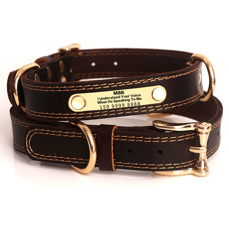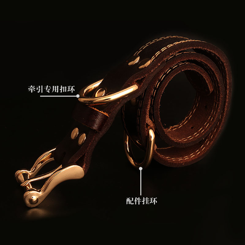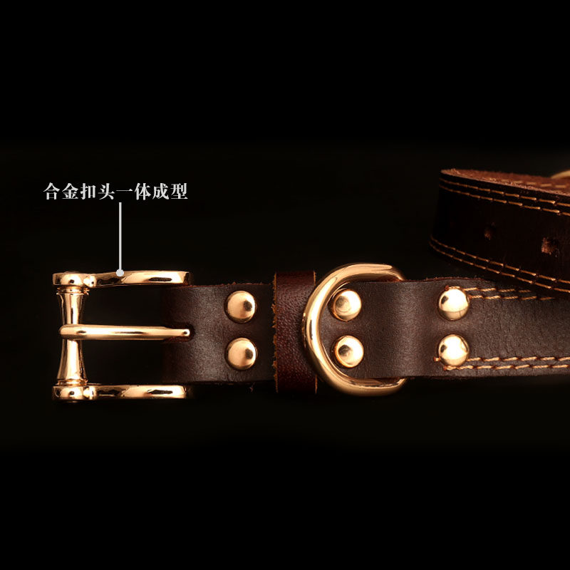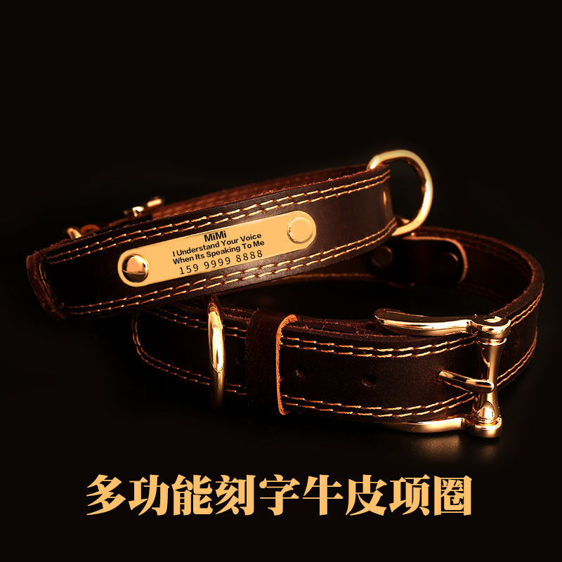 📚 宠物真皮狗狗刻字项圈可挂牵引绳头层皮定制防丢金毛中大型犬脖圈