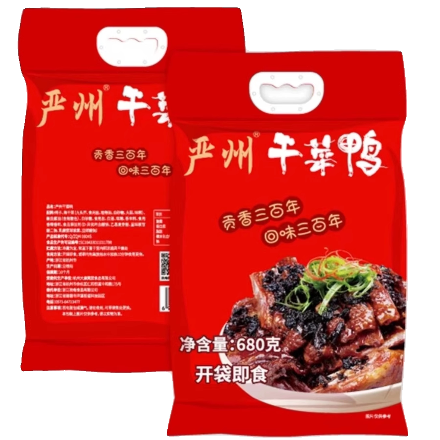 📚 新品杭州秋梅严州干菜鸭整只鸭肉卤味干菜鸭开袋即食680g真空袋装