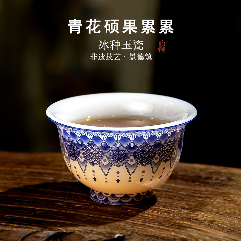 📚 景德镇官方陶瓷新品玉瓷主人杯青花茶杯高端礼盒装品茗杯送人自用