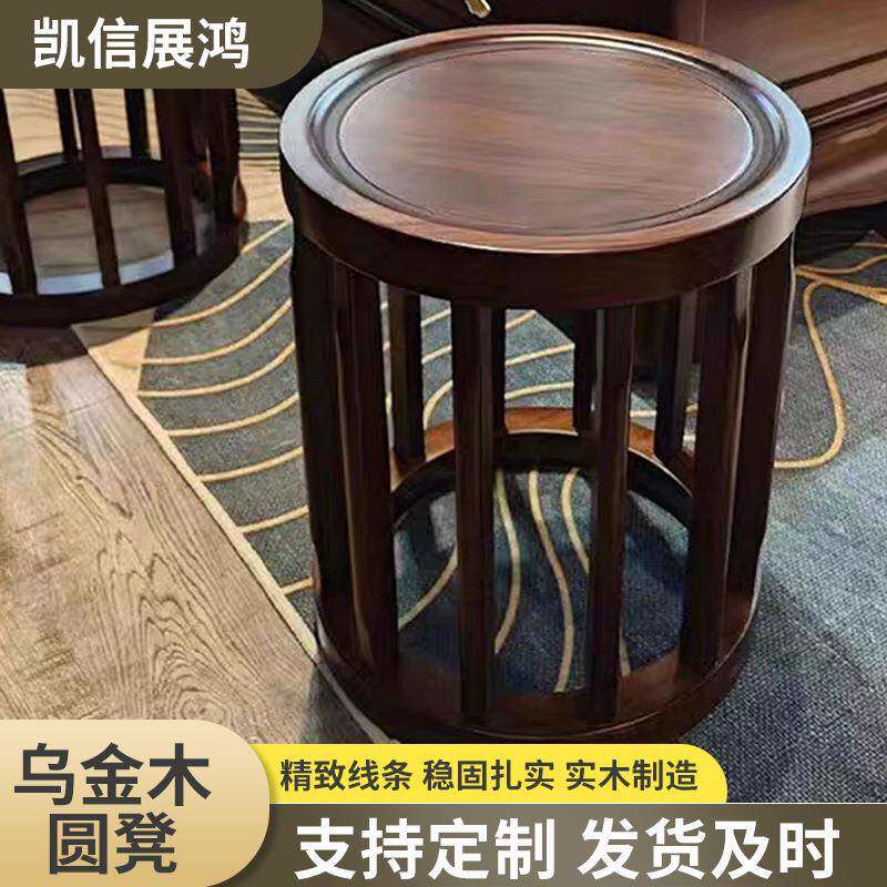 📚 新中式乌金木鼓凳中国风复古茶桌配套凳家用轻奢全实木梳妆台凳子