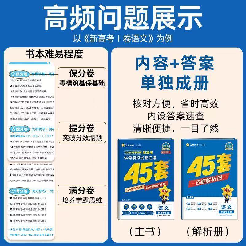 📚 2026版山东省专版新高考天星教育金考卷高考冲刺优秀模拟试卷汇编45套英语数学物理政治历史地理化学语文生物高一高二高三山东45套