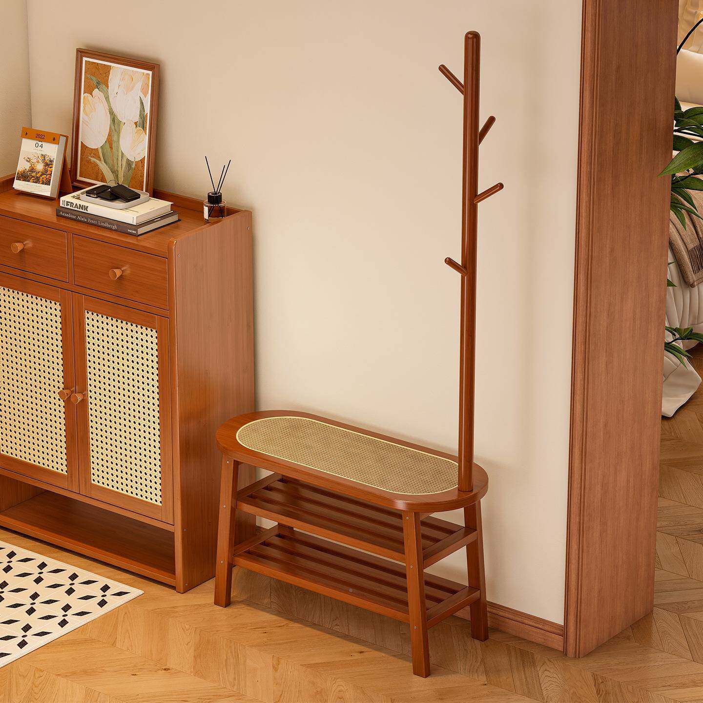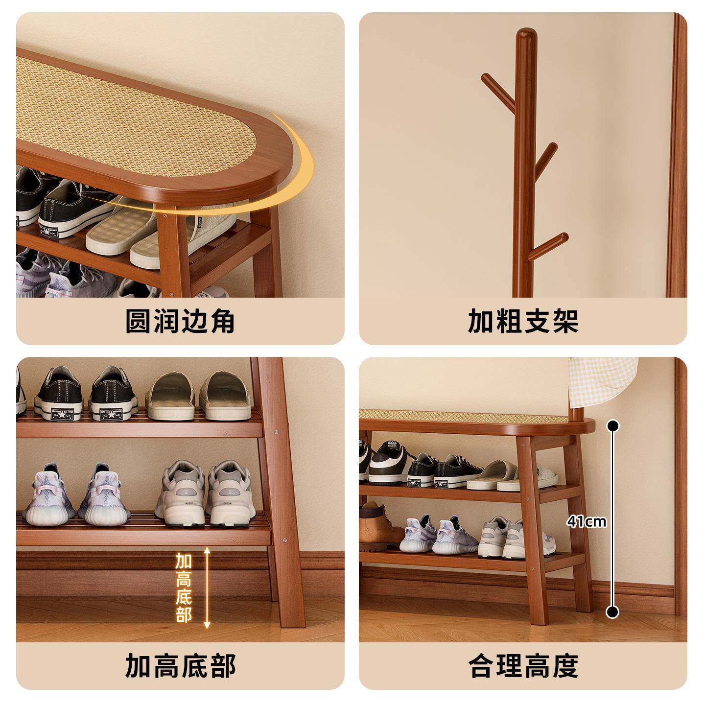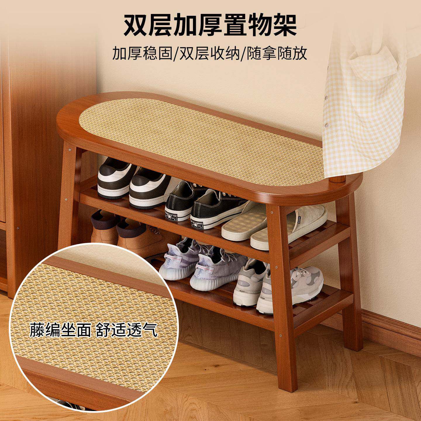📚 换鞋凳挂家用门口坐凳衣一POB简体入衣帽架户门易藤编多层鞋架收