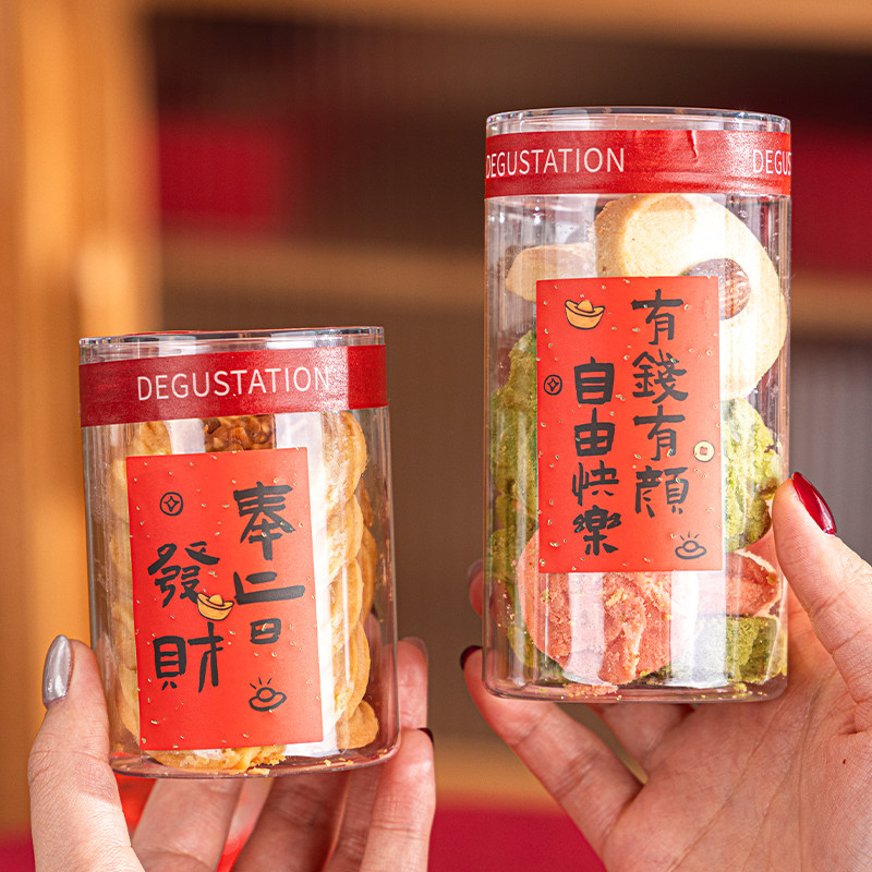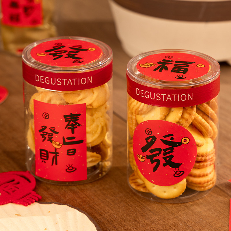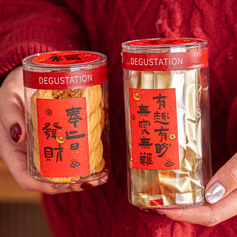 📚 新年饼干罐包装盒烘焙礼盒贴纸曲奇雪花酥糖果空盒子透明罐子过年