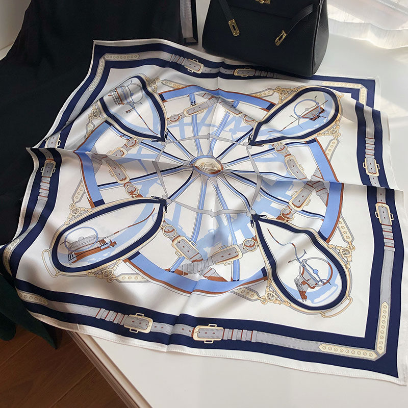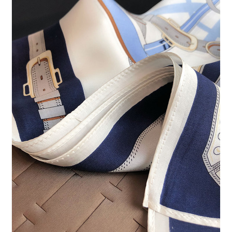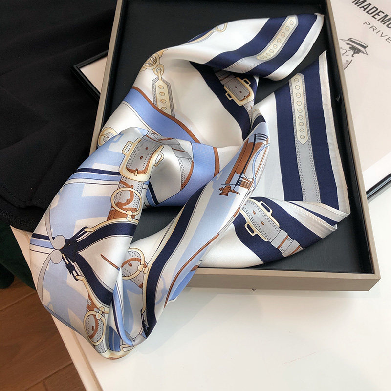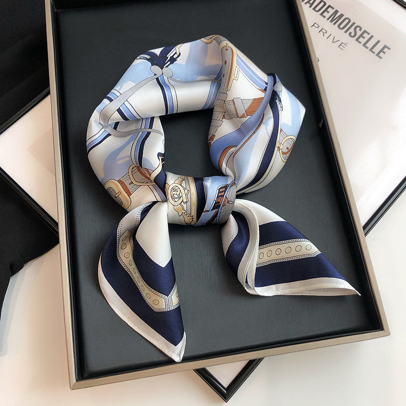 📚 蓝白色真丝丝巾百搭秋冬洋气时尚小方巾100%桑蚕丝中方巾送礼丝绸