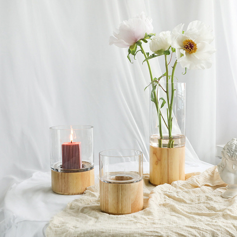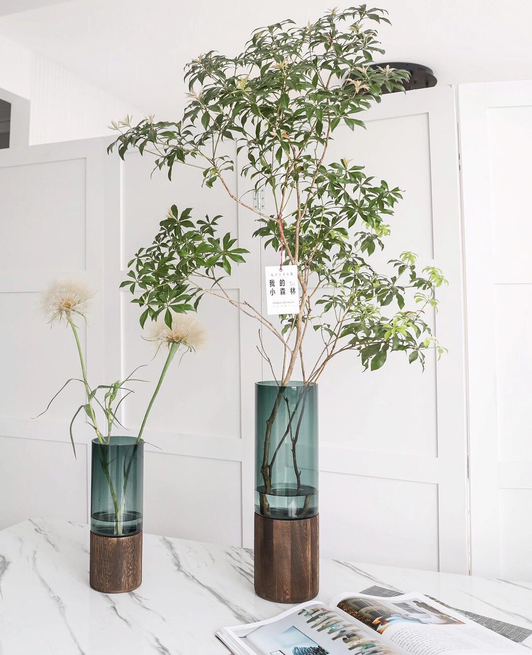 📚 欣唯嘉北欧直筒花瓶插花水培器皿带木托松绿创意设计客厅家居摆件