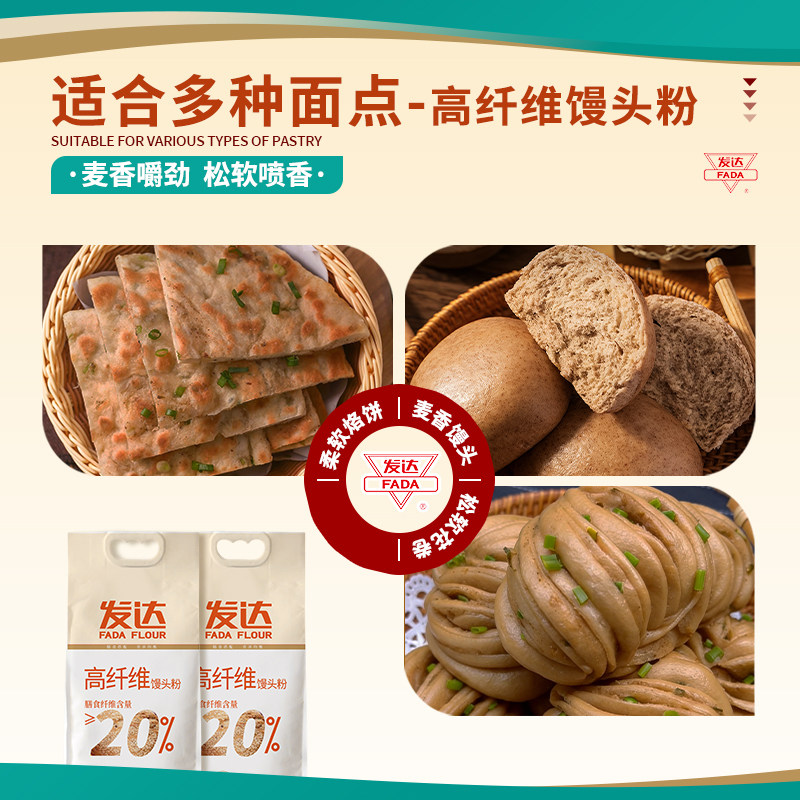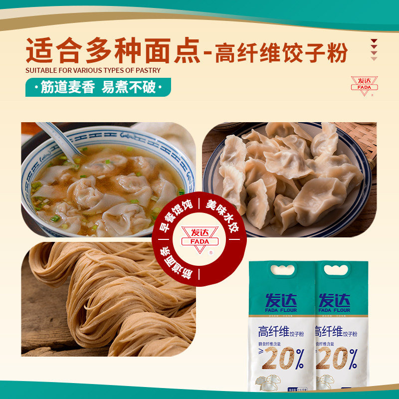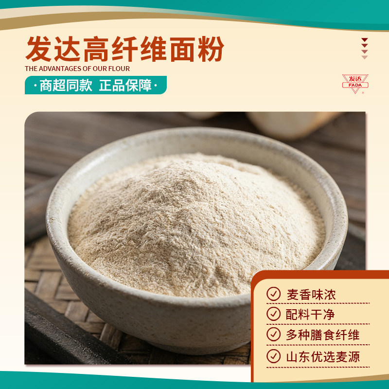 📚 山东发达高纤维小麦面粉5斤饺子粉馒头粉膳食纤维燕麦大豆米糠