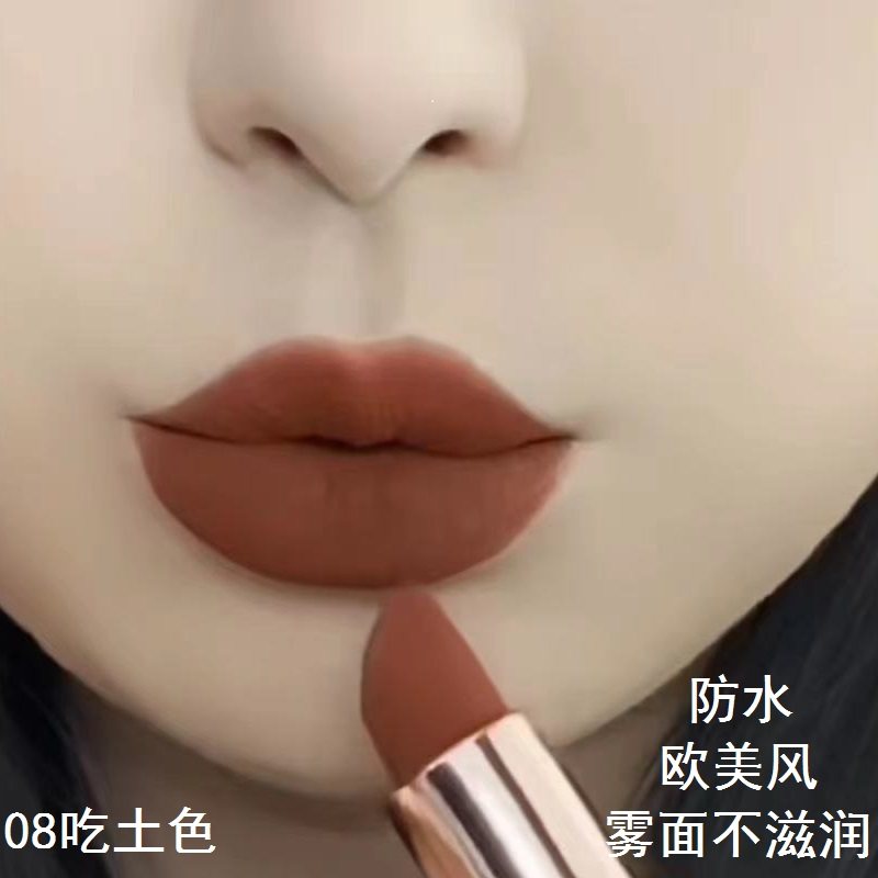 📚 欧美吃土色口红贡茶脏橘梅子色显白女学生款防水不易掉色哑光雾面
