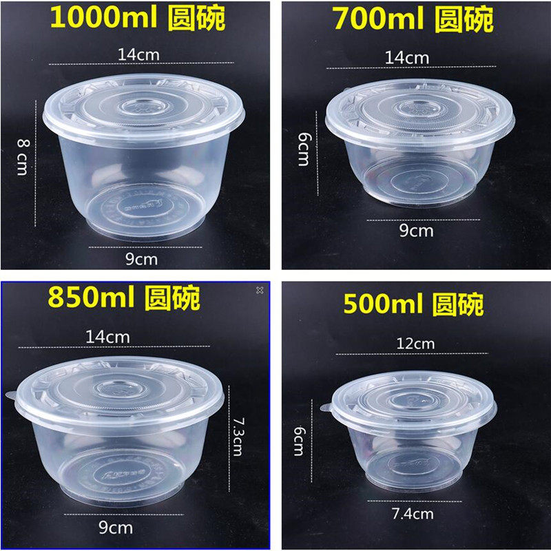 📚 一次性打包圆碗透明塑料餐盒外卖汤碗带盖500-700-850-1000ml无盖