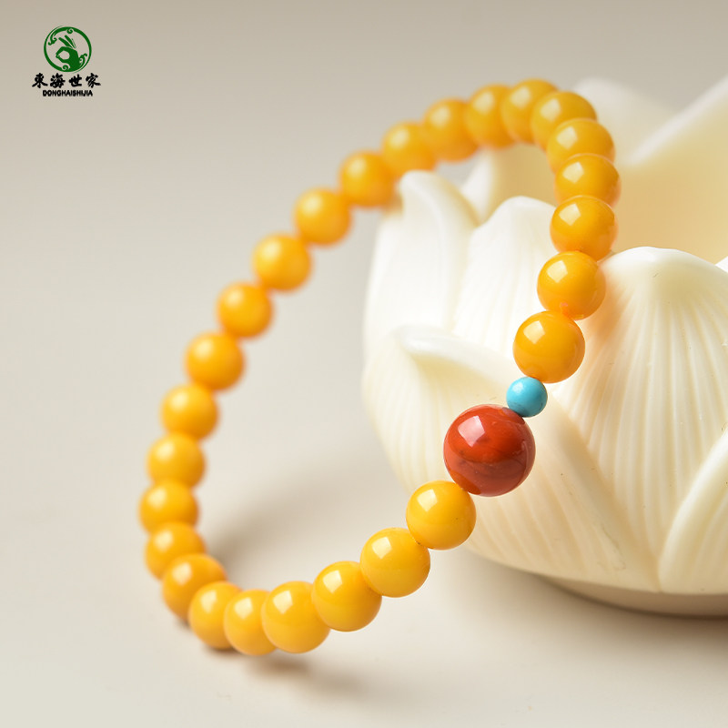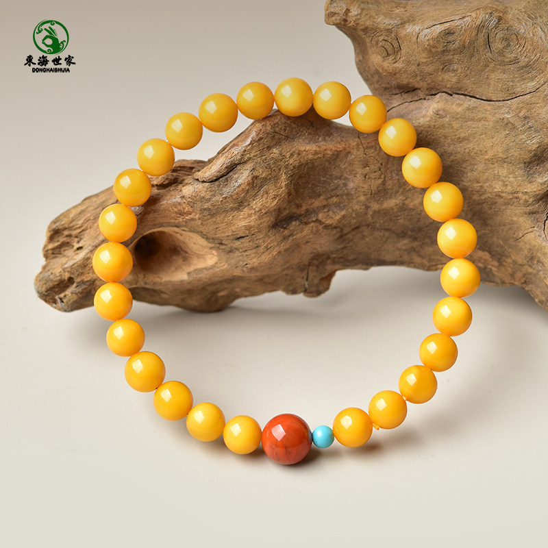 📚 蜜蜡手串女男东海水晶玛瑙文玩鸡油黄南红松石单珠单圈多圈手链