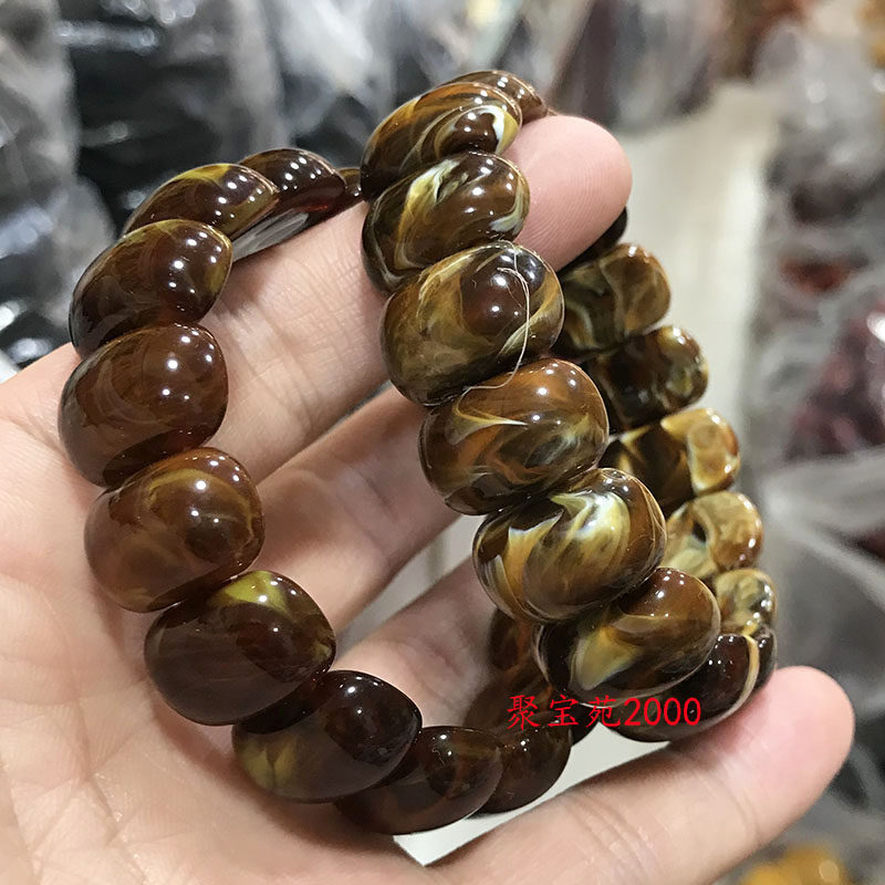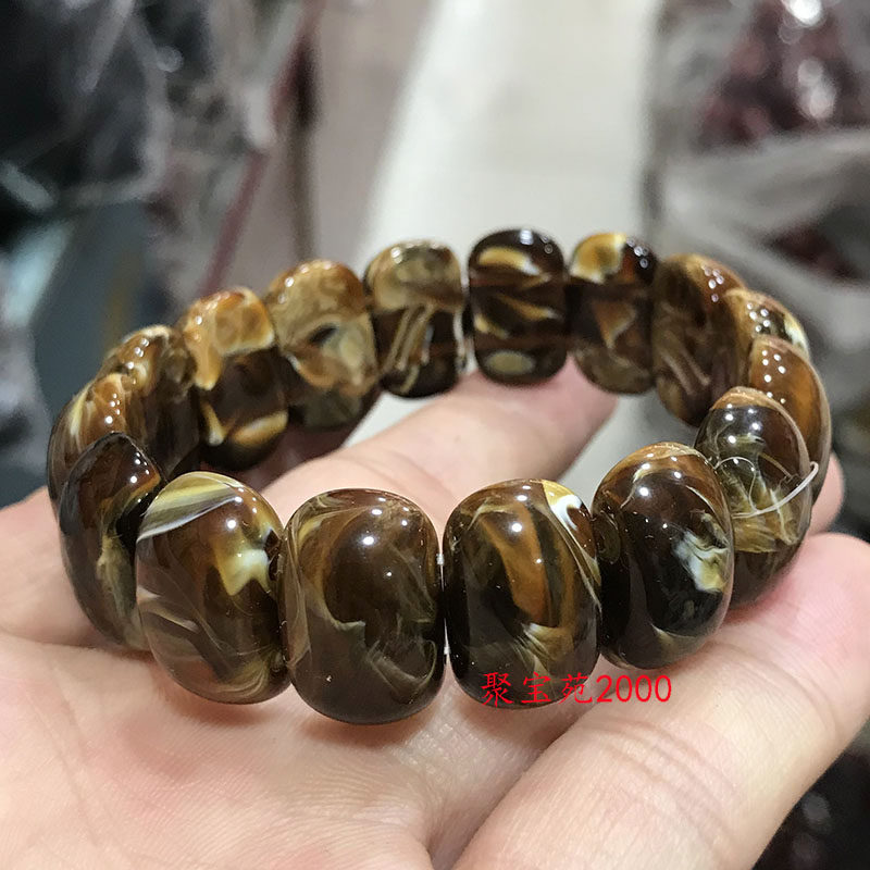 📚 缅甸根珀手串黑色琥珀蜜蜡妖花溶洞蜜老蜜手排男女款手链文玩手饰