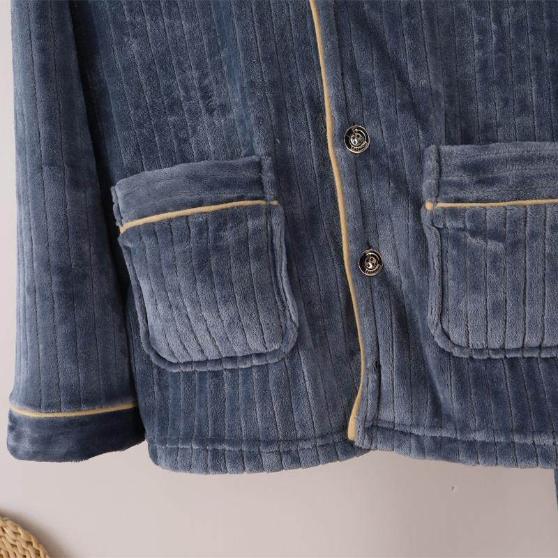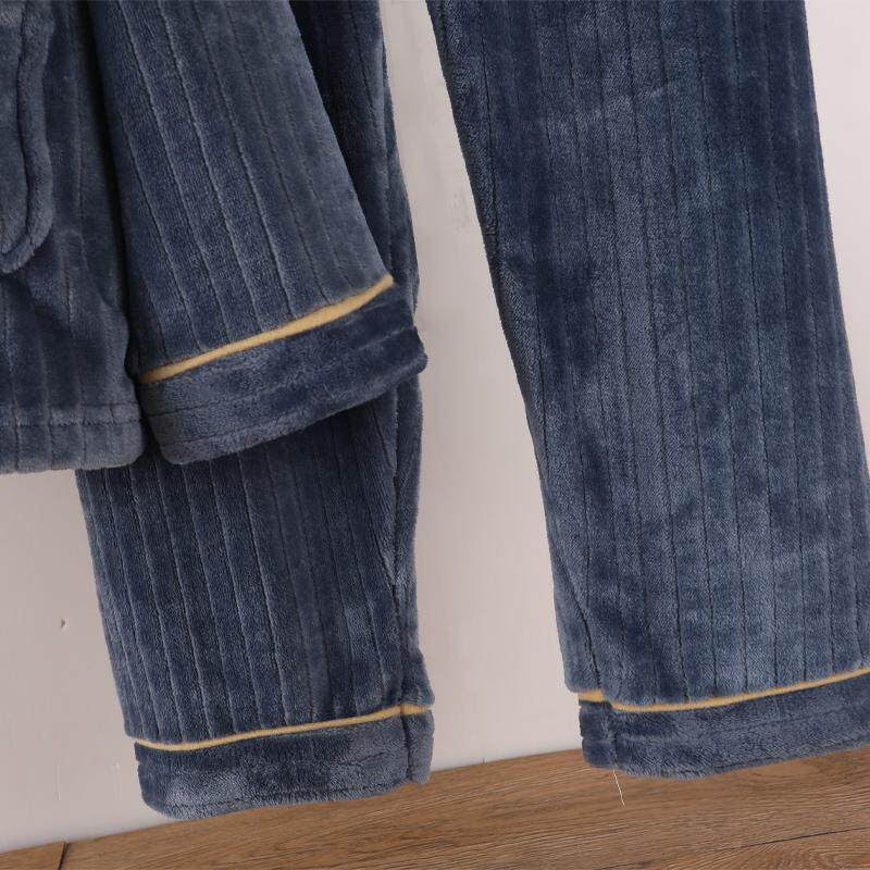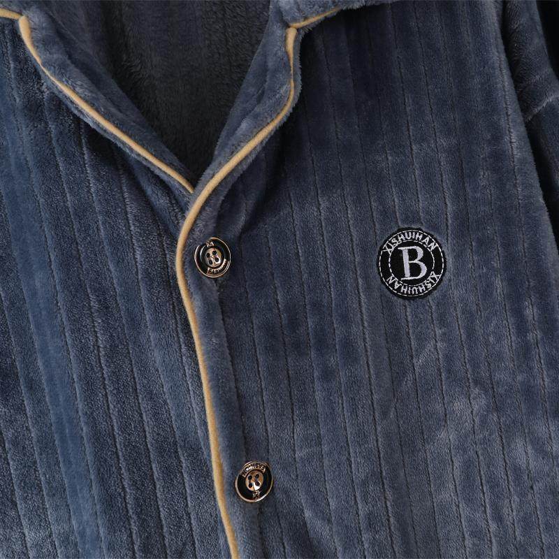 📚 法兰绒家居服冬季睡衣男士加厚加绒保暖开衫有口袋珊瑚绒秋冬中青