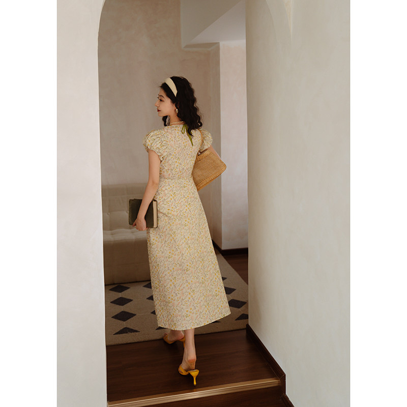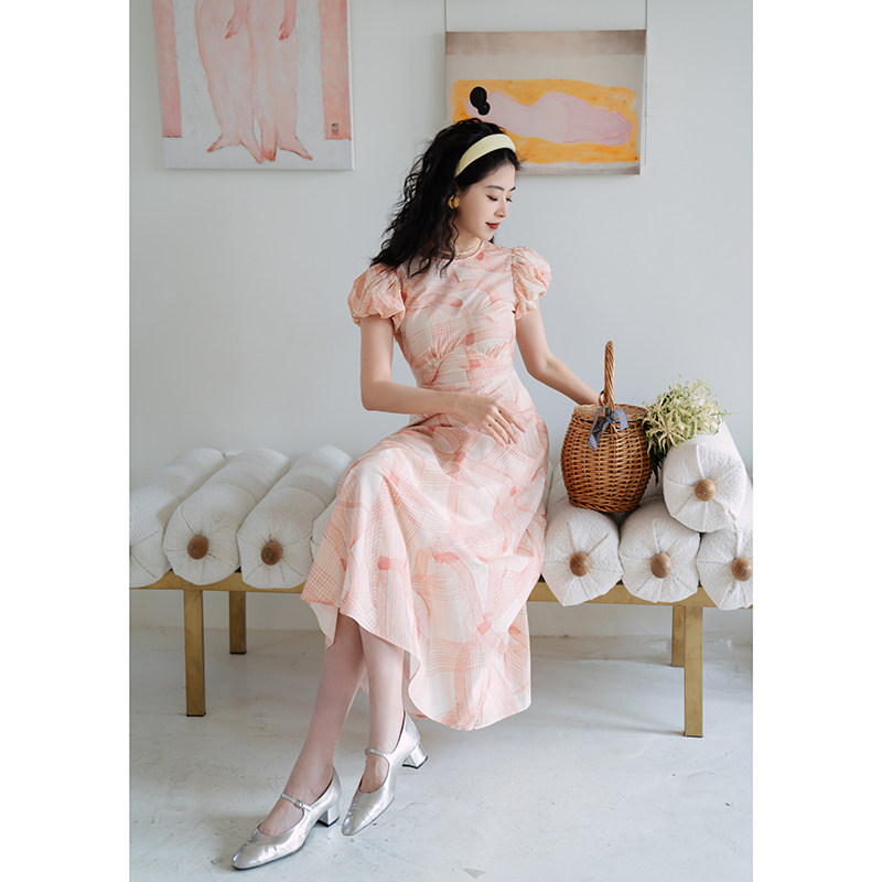 📚 青的衣橱 法式复古圆领高支精梳棉撞色印花裙 显瘦制片人连衣裙女