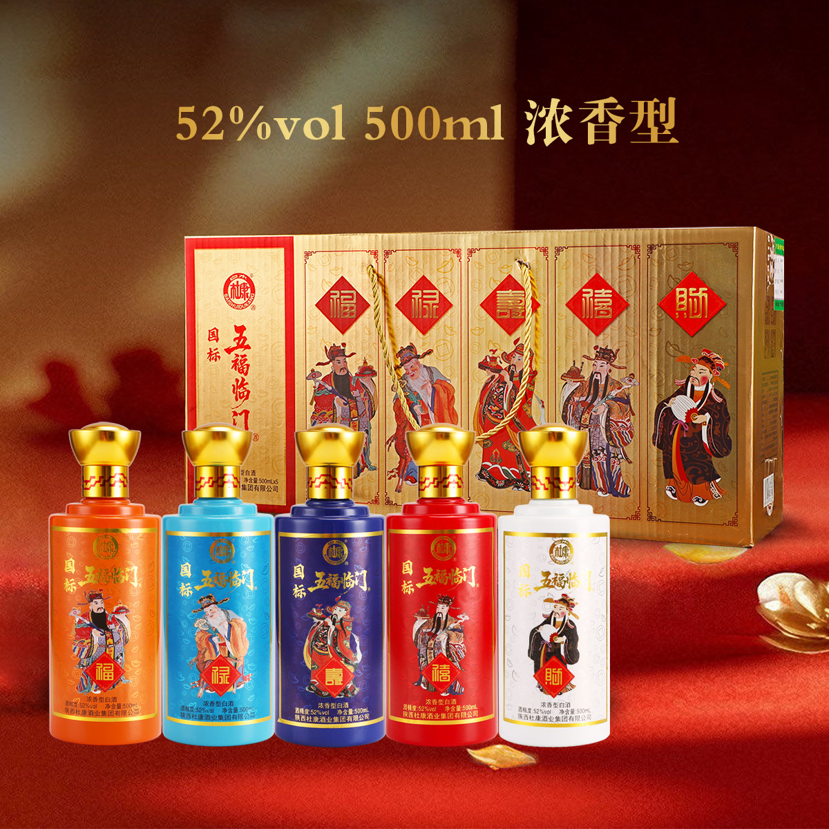 📚 白水杜康五福临门52度浓香型礼盒白酒年货送礼新年老丈人瓶装福禄
