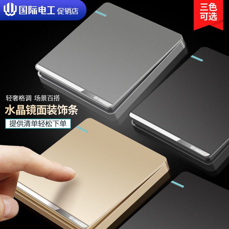 📚 国际电工86型开关插座家用面板二开单联双开双控双联电灯金色大板