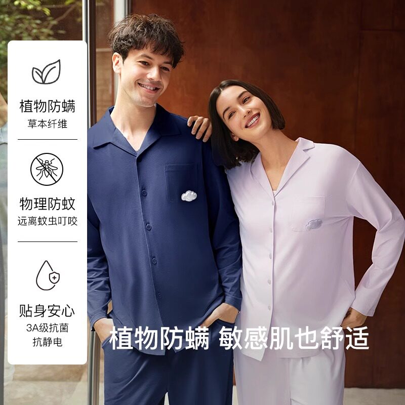 📚 【刘雯同款】ubras睡衣云棉男女士家居服情侣套装长袖防螨秋冬款