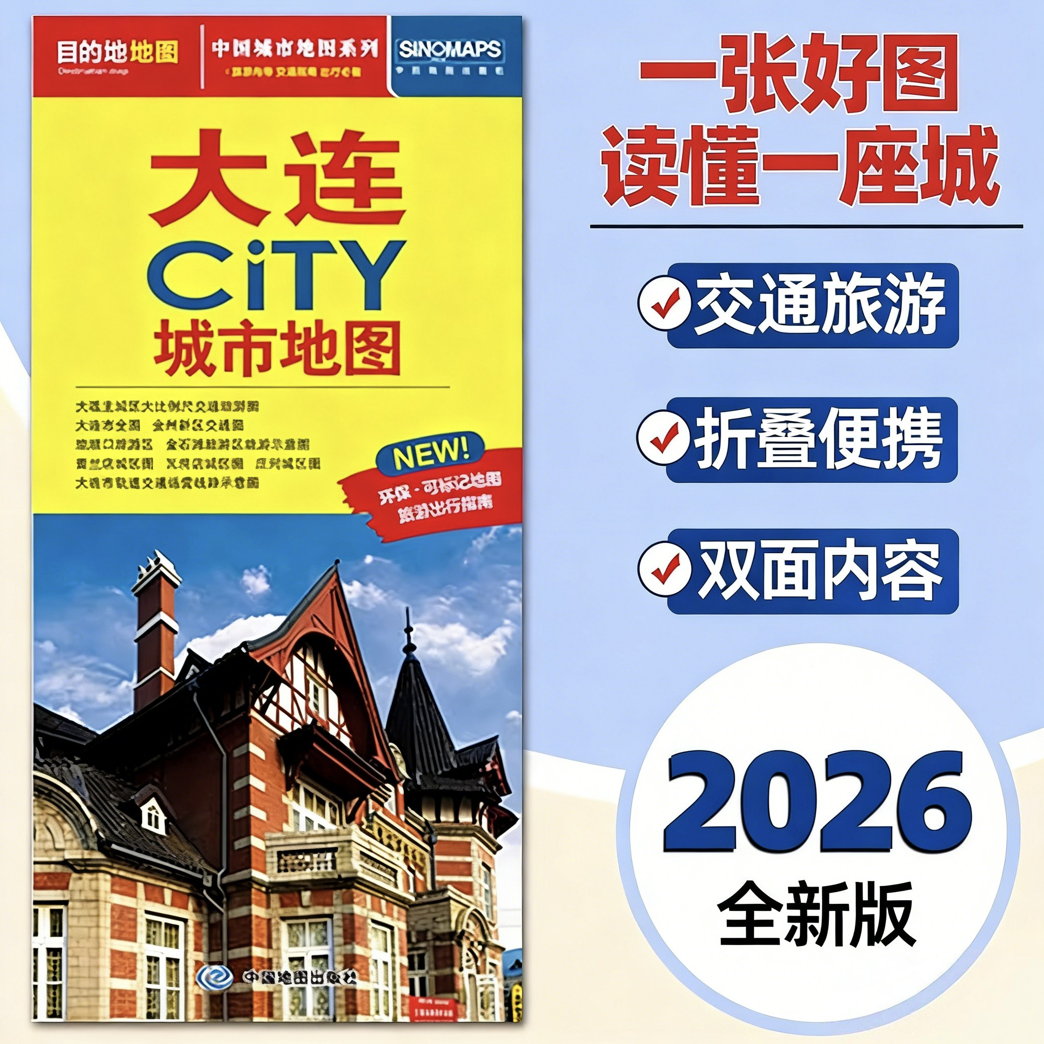 📚 2026新版大连地图旅游交通约86x60cm 大连city城市地图折叠地图大连交通旅游地图便携易带 环保可标记旅游出行指南