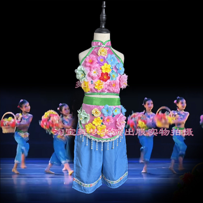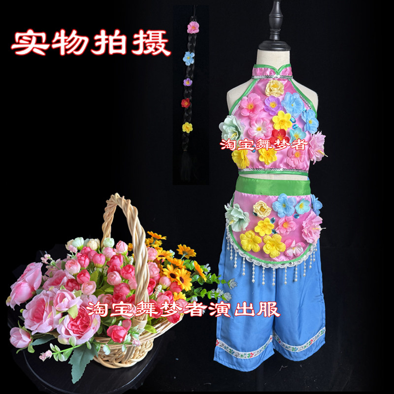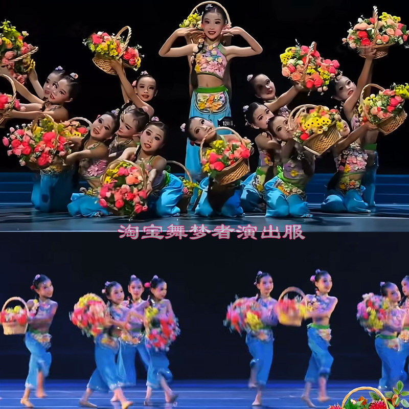 📚 又见南泥湾舞蹈演出服六一儿童节幼儿七彩花朵篮表演服装新款2026