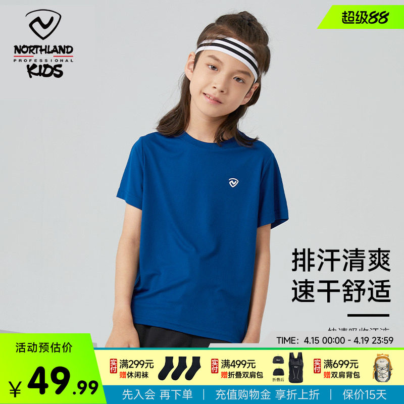 📚 诺诗兰儿童速干衣男童短袖t恤女童大童排汗运动跑步t训练服体恤衫