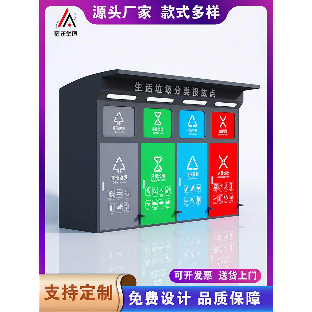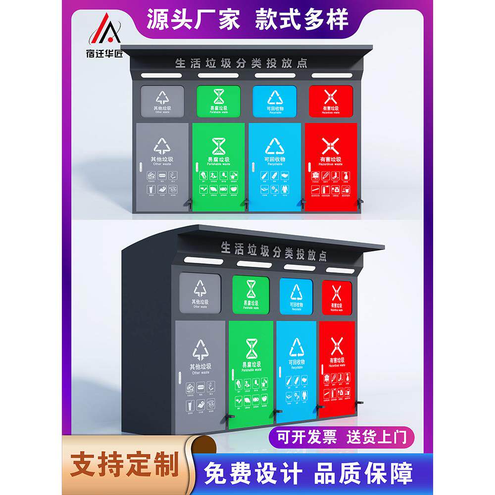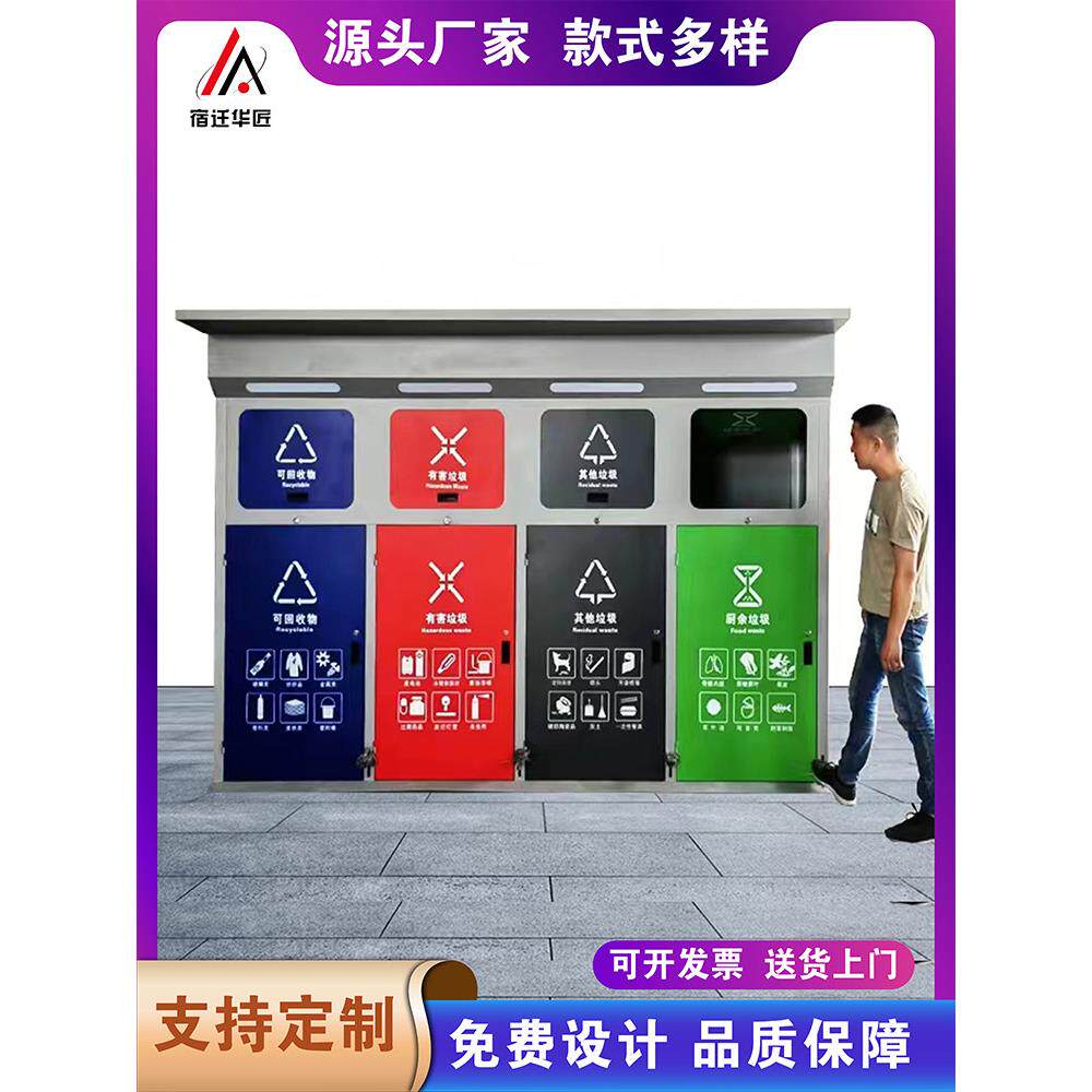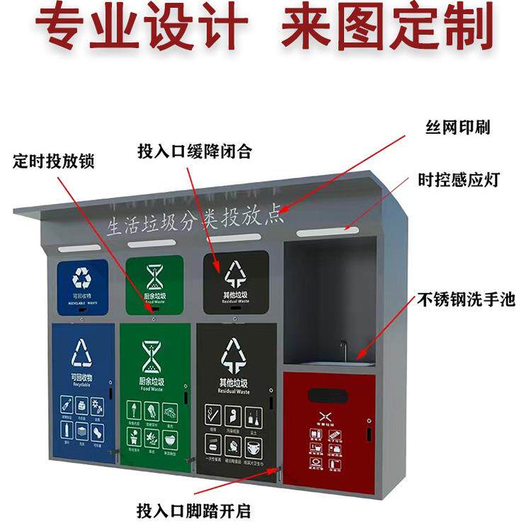 📚 户外智能垃圾分类箱脚踏感应垃圾回收箱多分类垃圾分类箱房定制