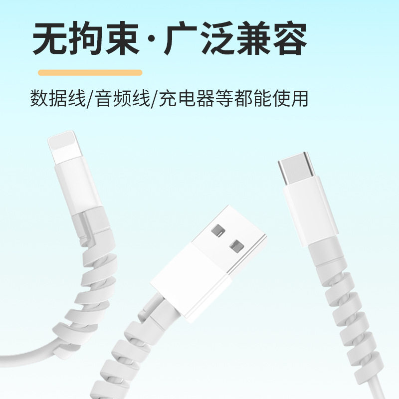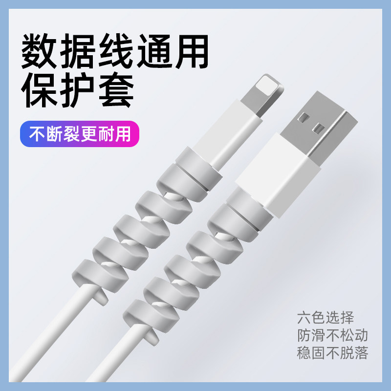 📚 螺旋数据线保护套充电线通用螺纹短缠绕线器防折断手机纯色耳机线