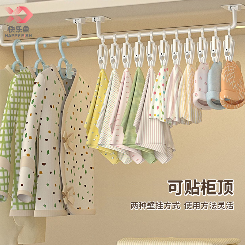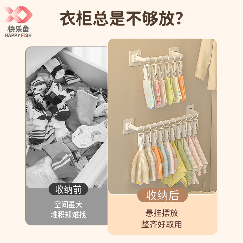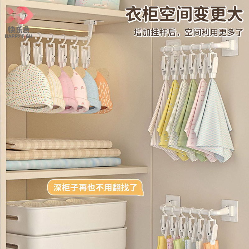 📚 快乐鱼儿童衣柜挂杆帽子收纳壁挂免打孔粘钩婴儿毛巾挂钩袜子夹子