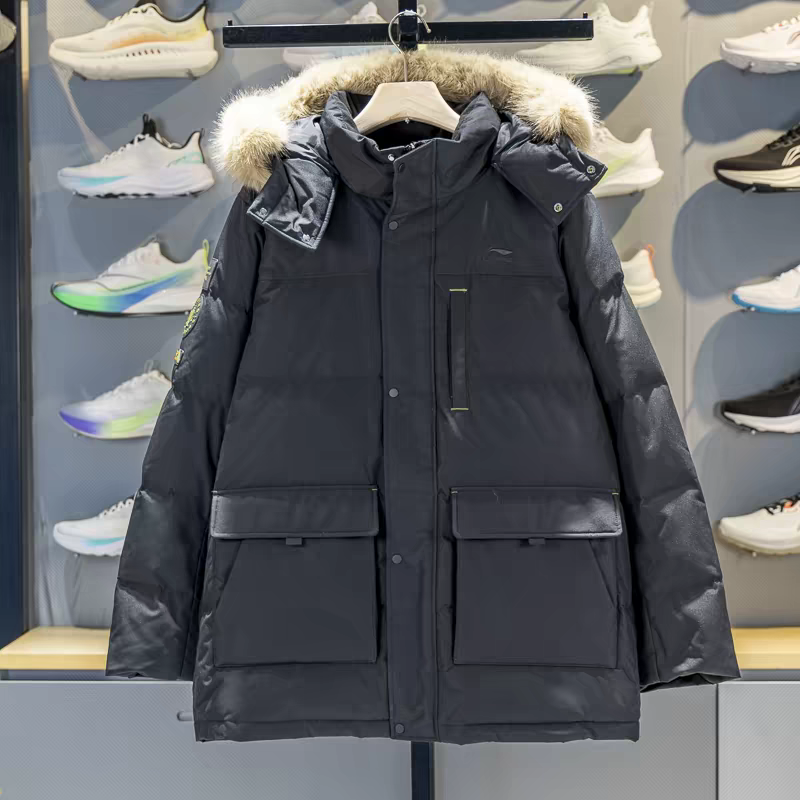 📚 李宁中长款羽绒服男子2025冬季鸭绒保暖宽松连帽外套AYMV341
