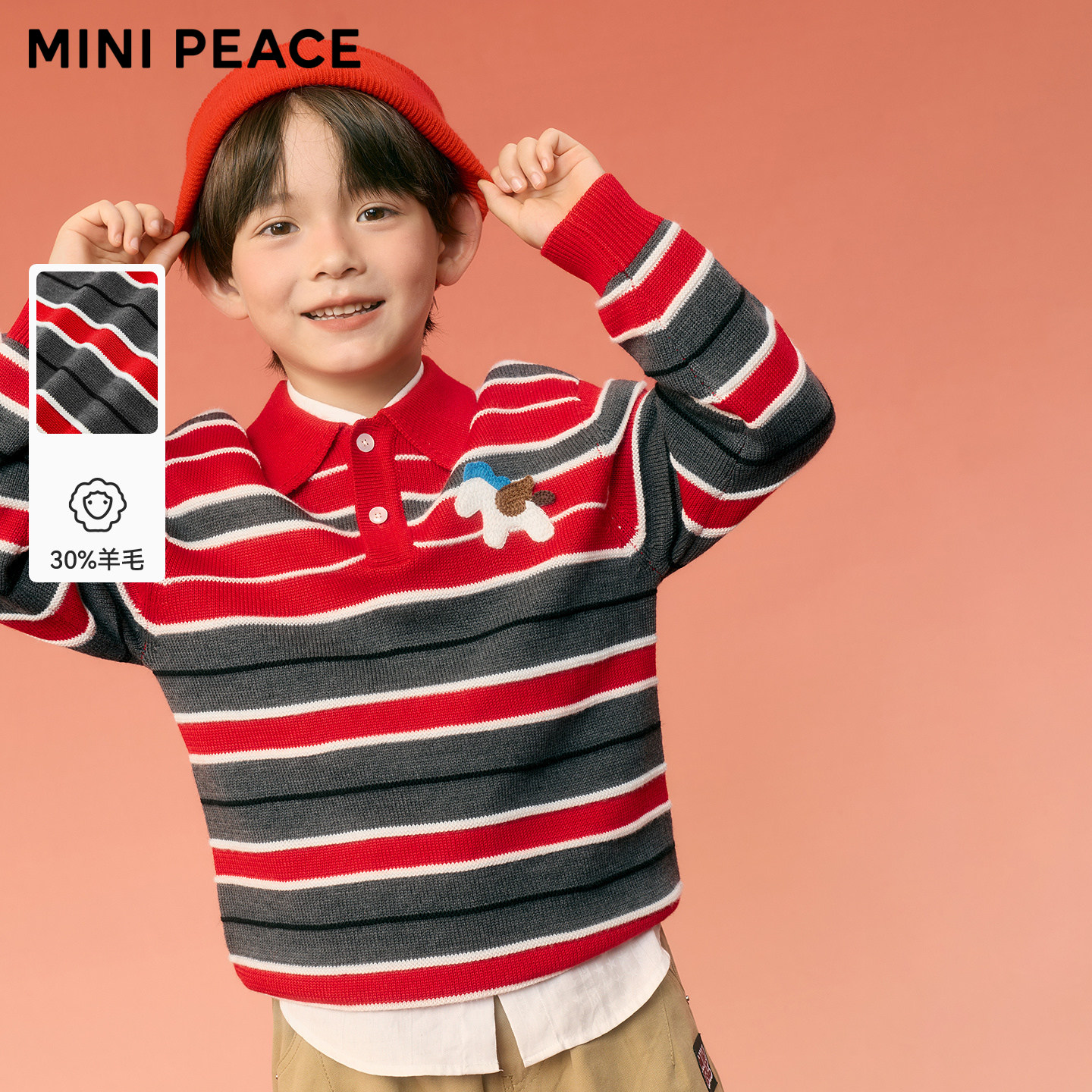 📚 [羊毛衫]MINIPEACE太平鸟童装男童POLO领毛衣秋冬复古条纹针织衫