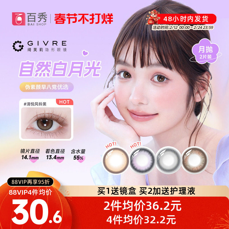 📚 绮芙莉givre美瞳月抛2片大小直径自然彩色隐形眼镜近视官方正品女