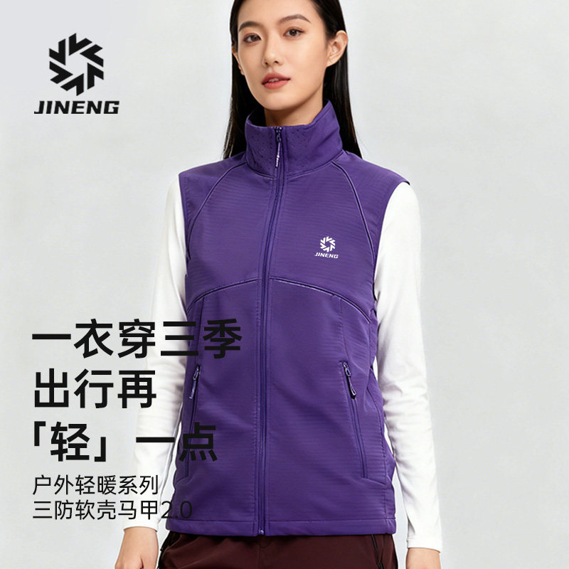 📚 积能冬季户外跑步马甲男女防风防泼水加绒保暖运动马拉松软壳外套