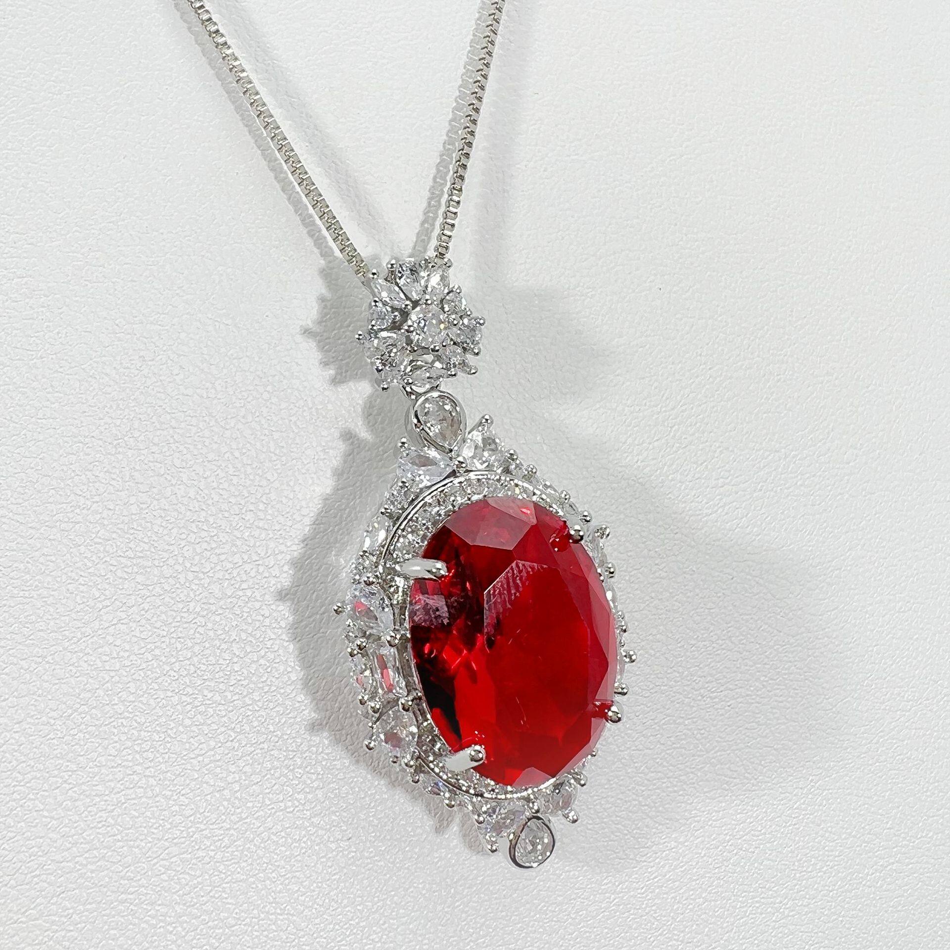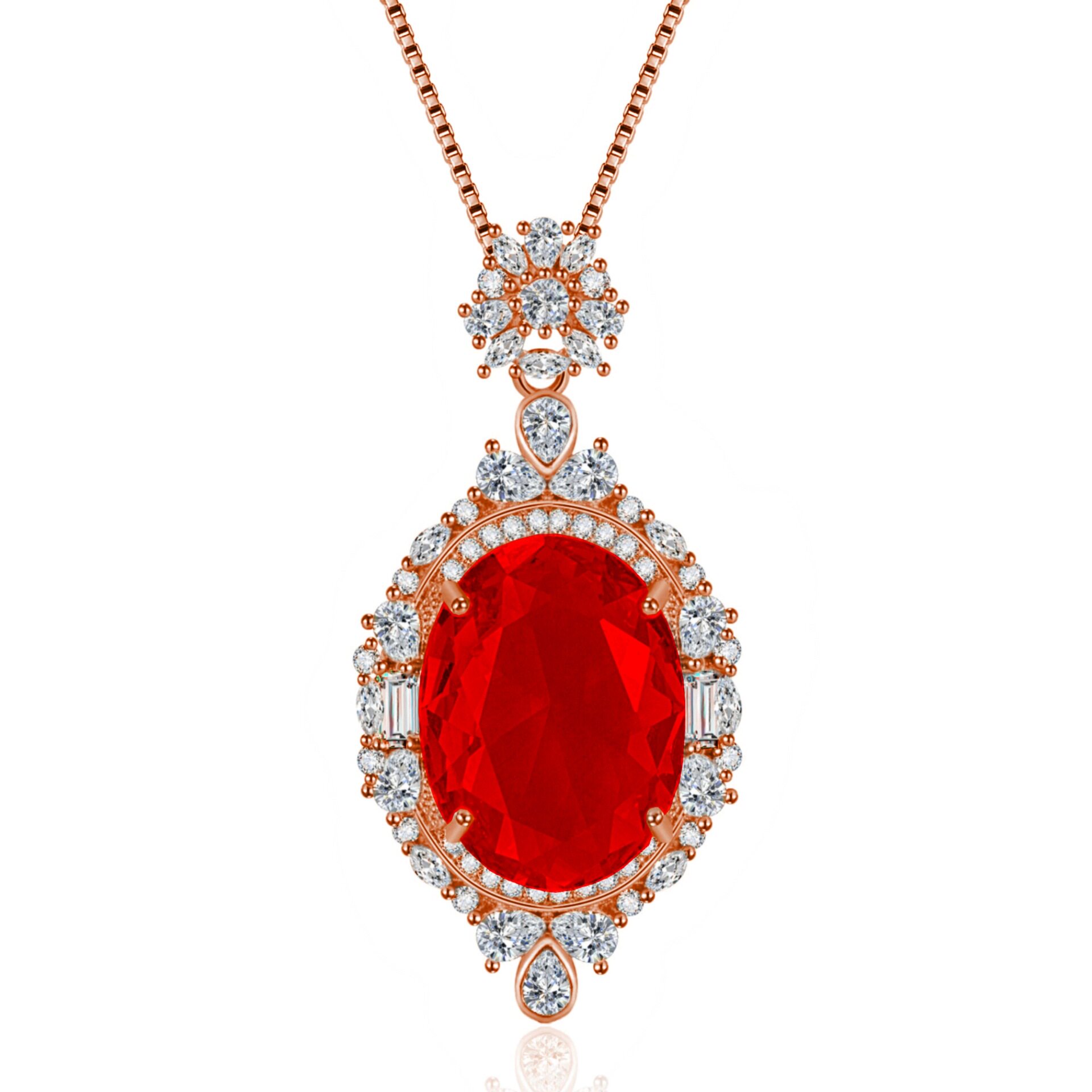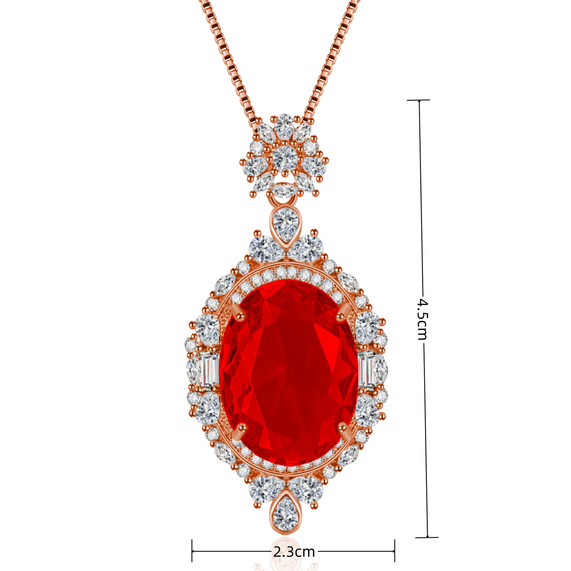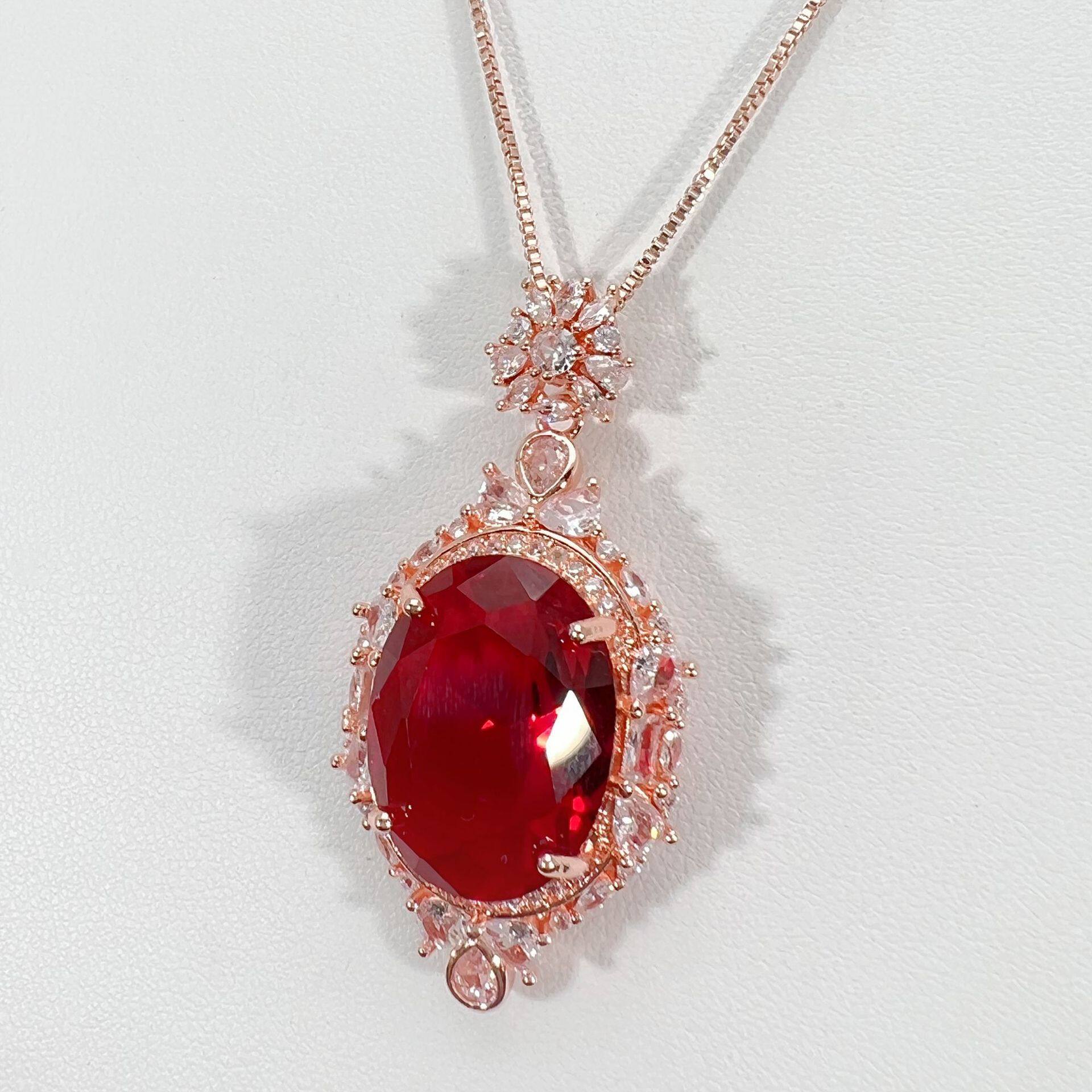 📚 高贵优雅玫瑰金太阳花水瓶形红水晶吊坠项链时尚大气红宝石项坠女