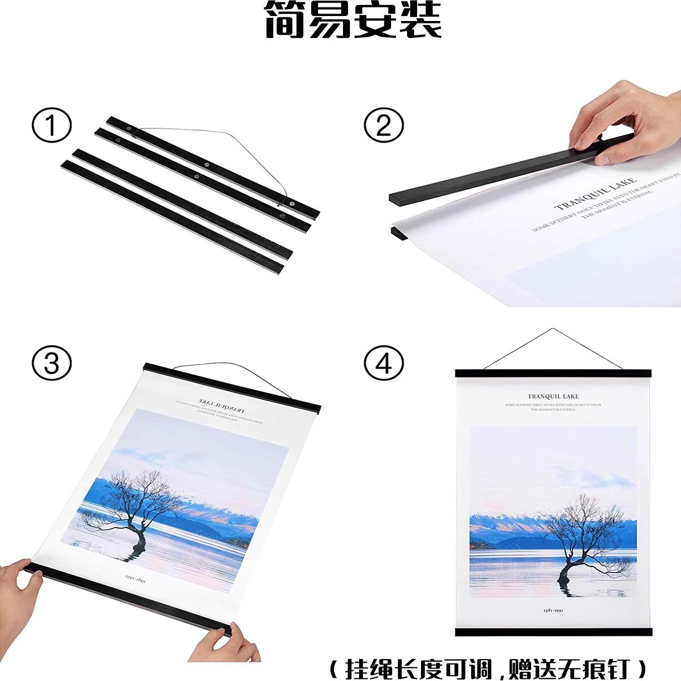 📚 个人定制简约实木磁铁挂轴画油画布挂画空白卷轴海报订做来图定做