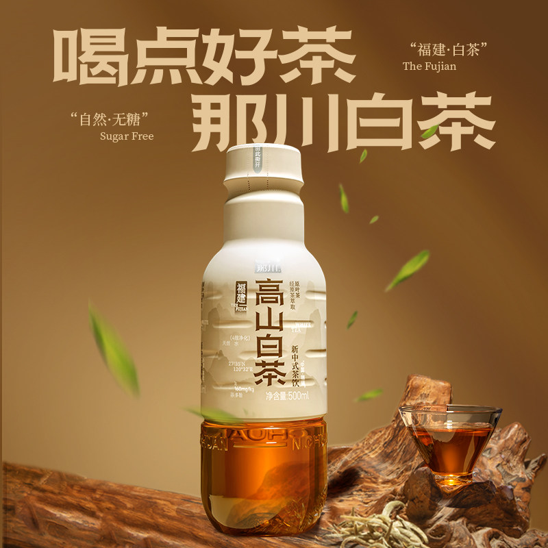 📚 那川新一代高山白茶 无糖纯茶饮料 解腻解渴 0糖0脂0卡 500ml*4瓶