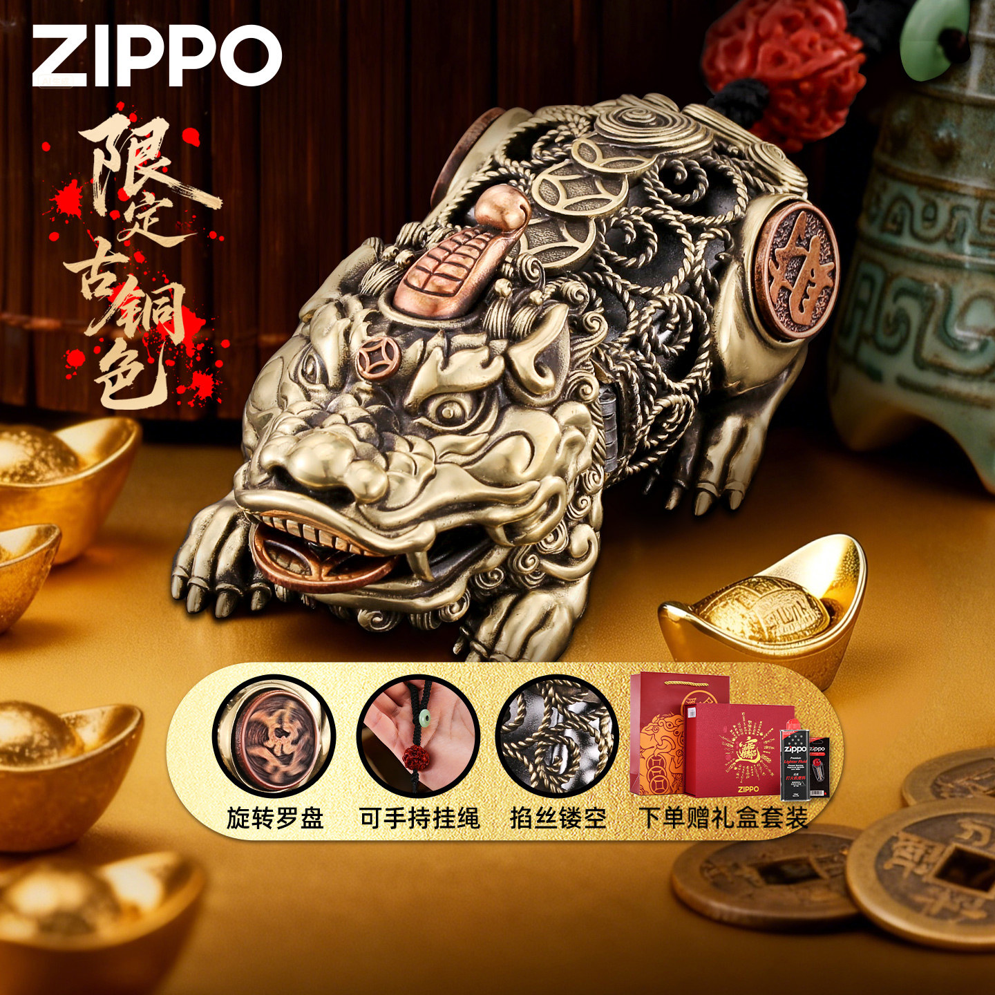 📚 zippo正品打火机 天禄貔貅官方旗舰店防风煤油新年送男友礼物高档