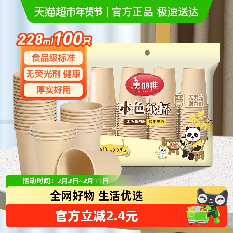 📚 美丽雅一次性杯子228ml*100只加厚本色家用办公室喝水喝咖啡