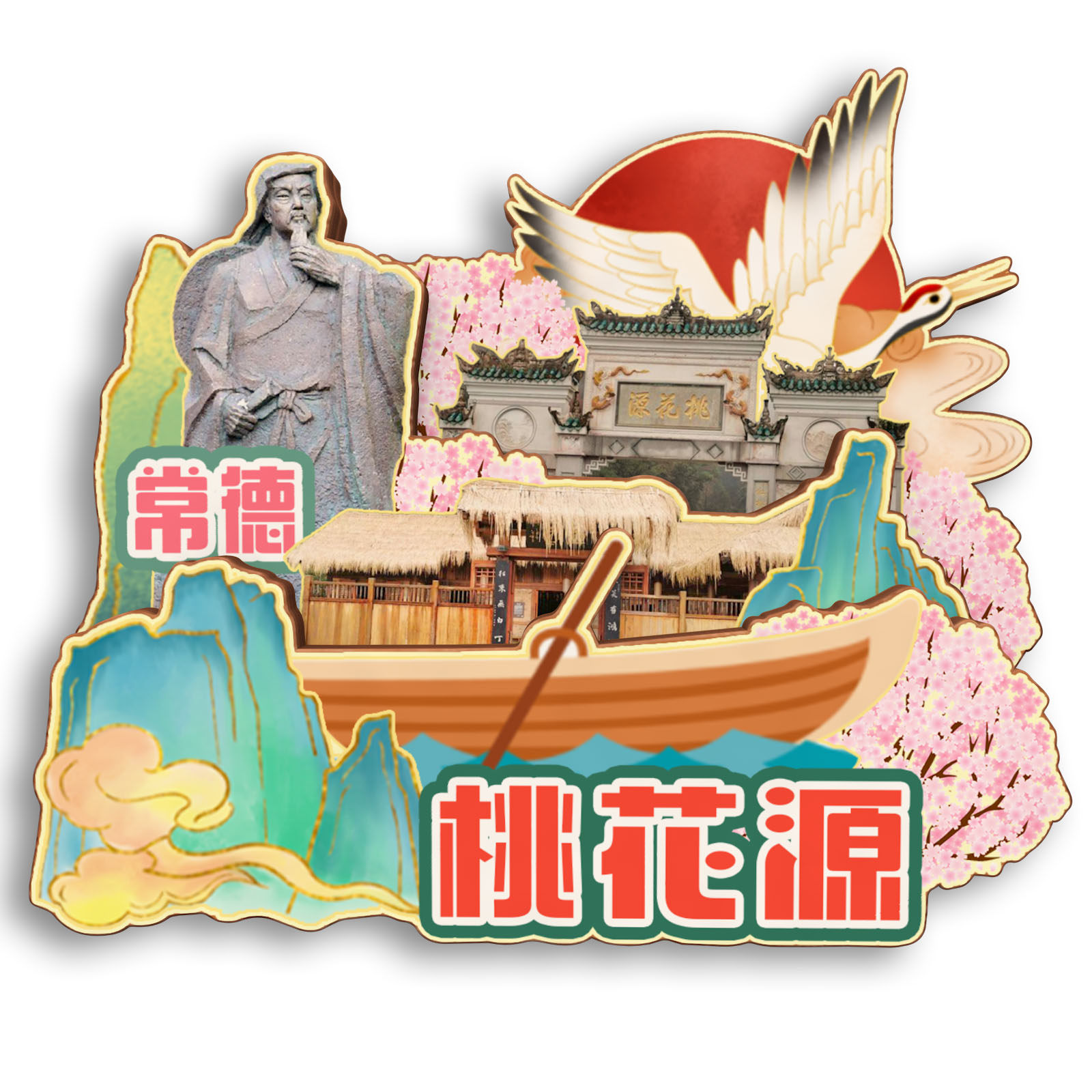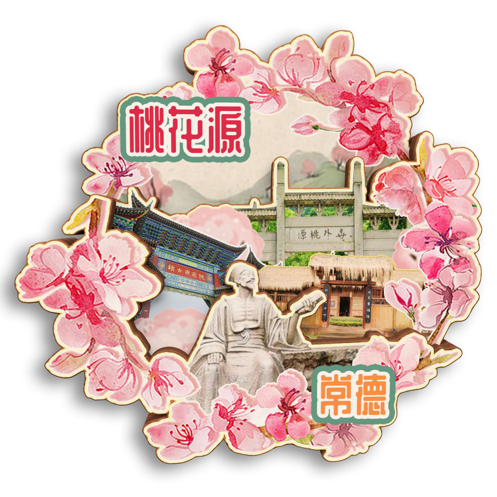 📚 湖南桃源桃花源夷望溪枫林花海星德山木质冰箱贴旅游纪念品伴手礼