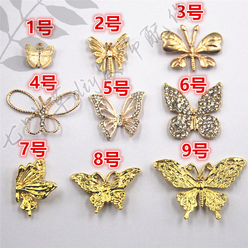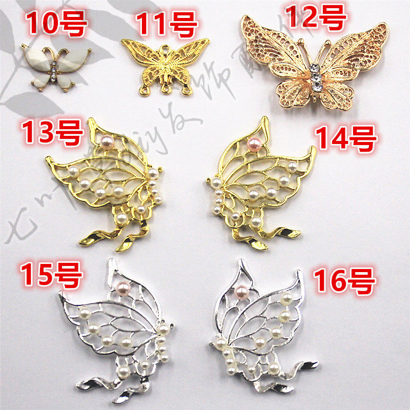 📚 合金金色花蝶蝴蝶凤尾蝶小蝴蝶镶钻镶猫眼钻镶珍珠吊坠 七叶草diy