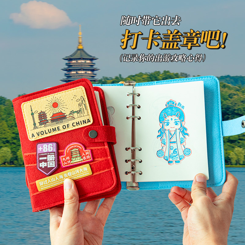 📚 青禾纪一册中国旅游盖章打卡本纪念活页可拆卸手账本护照证件收纳中国地图旅行足迹高颜值手账本盖章本