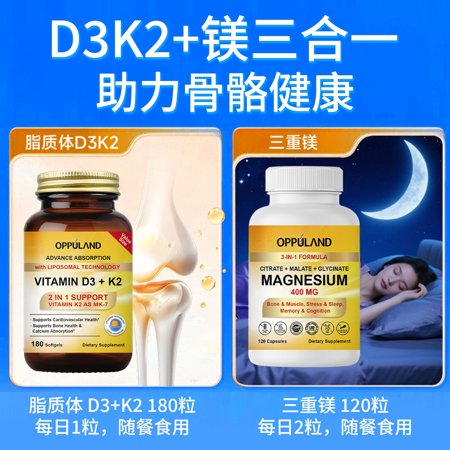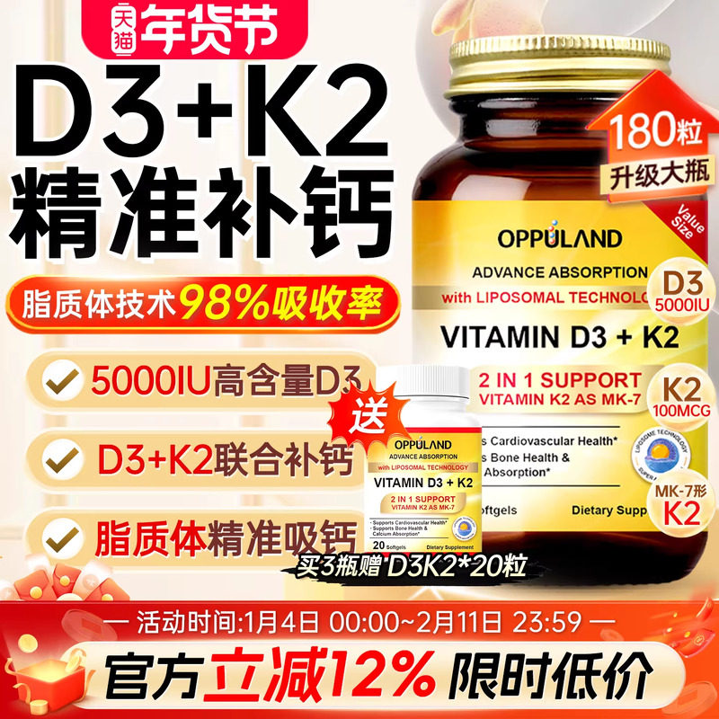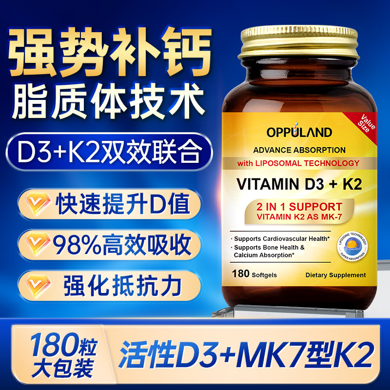 📚 活性维生素D3K2镁三合一胶囊成人中老年补钙钙片脂质体d3美国进口