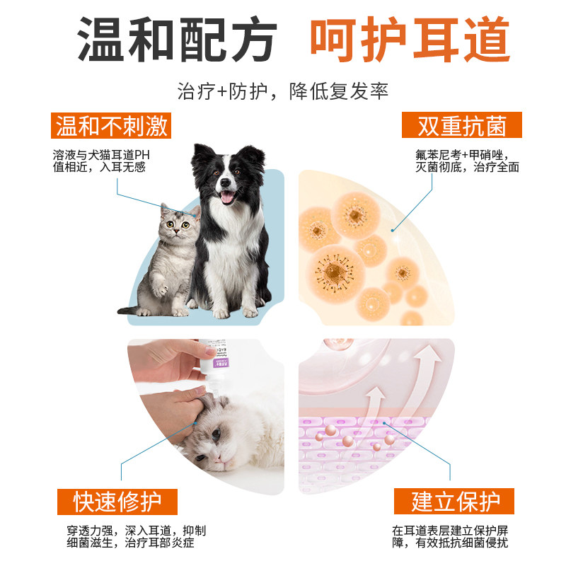 📚 氟苯尼考甲硝唑滴耳液猫咪狗狗中耳炎药耳朵发炎除耳螨真菌专用药