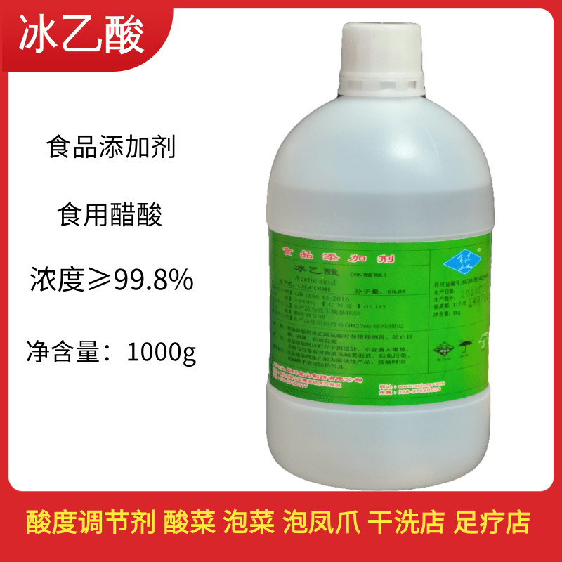 📚 冰乙酸食用冰醋酸食用级增酸剂醋精商用瓶装泡菜腌菜干洗店足疗店