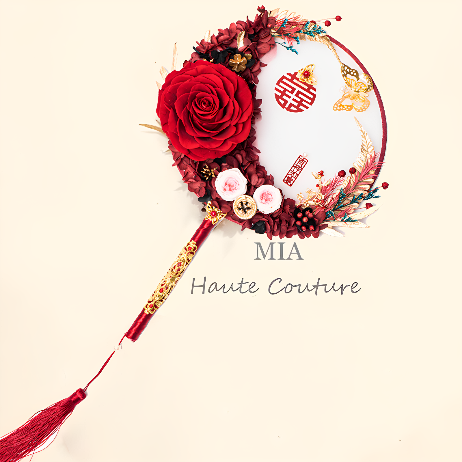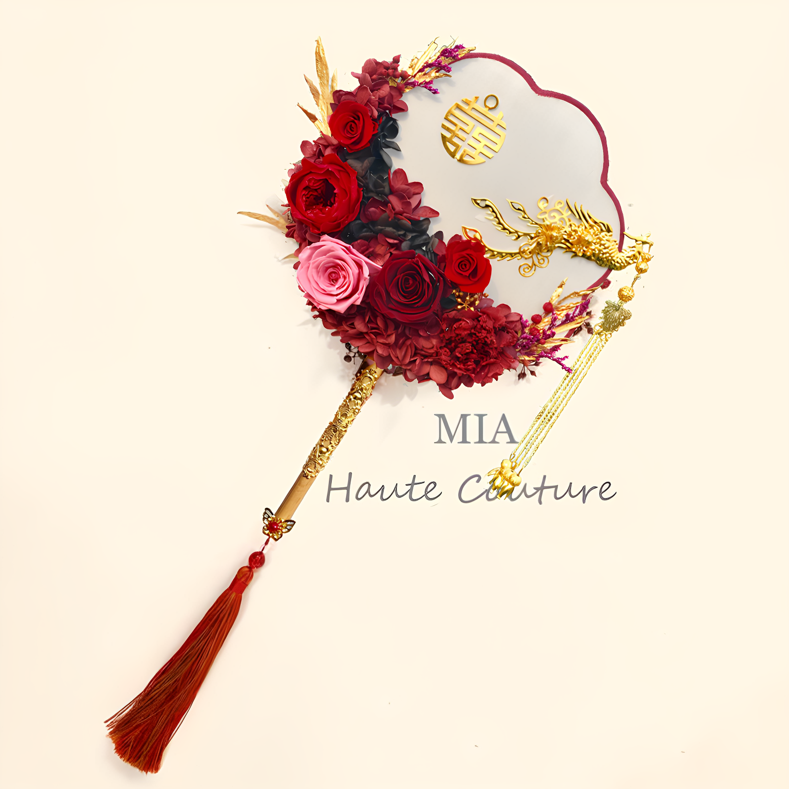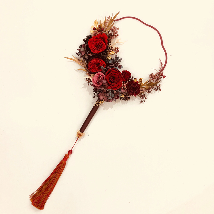 📚 中式永生花团扇结婚新娘出嫁喜扇子婚礼手捧花高级团扇diy材料包