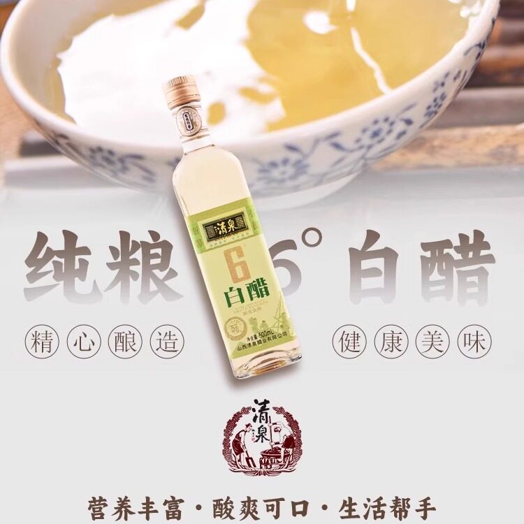 📚 【清泉白醋】6度500ml瓶无添加纯粮酿造食用洗脸美白泡脚白醋