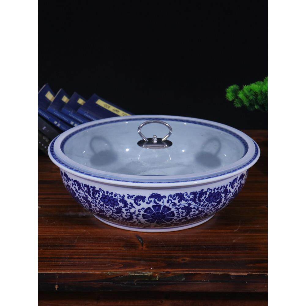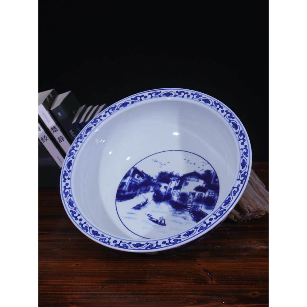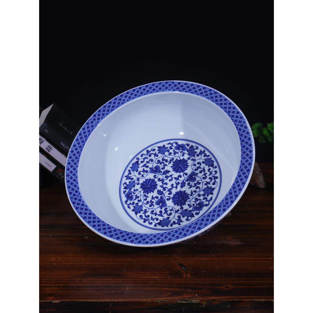 📚 景德镇陶瓷和面盆发面盆老式水煮鱼盆家用大号加厚加深青花盆子