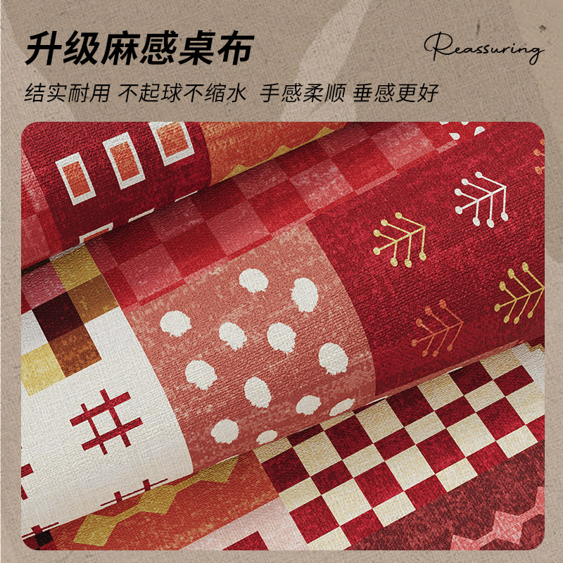 📚 新年餐桌布红色防水防油免洗喜庆餐桌垫轻奢氛围感装饰茶几盖布