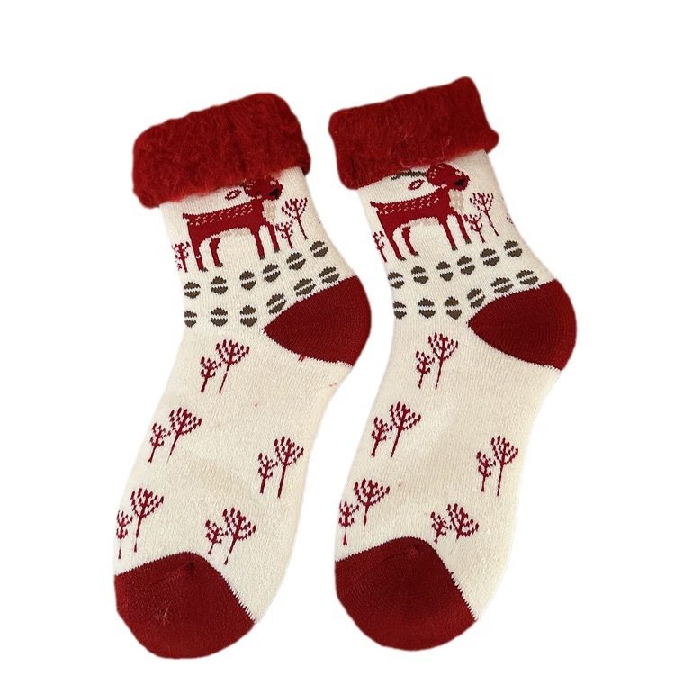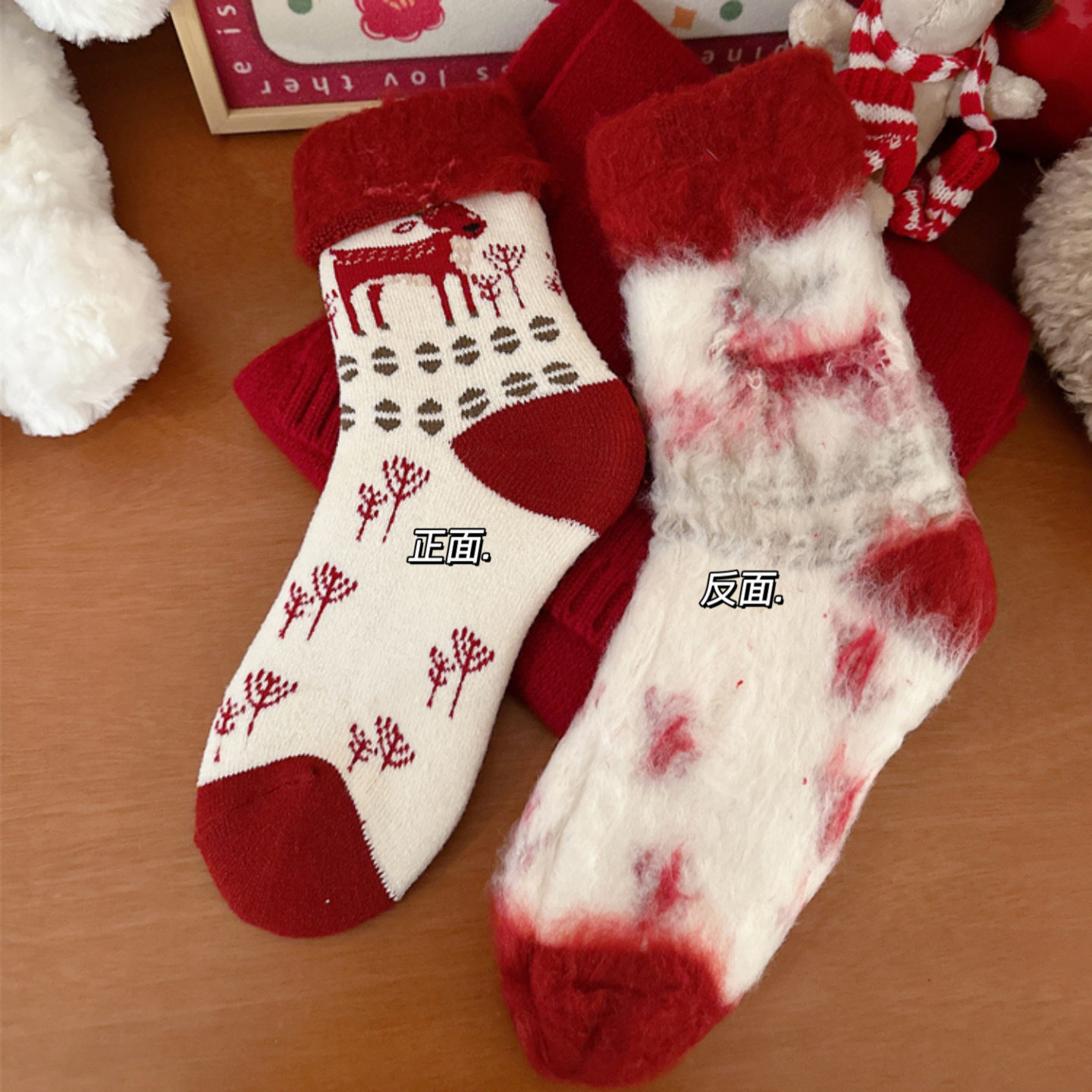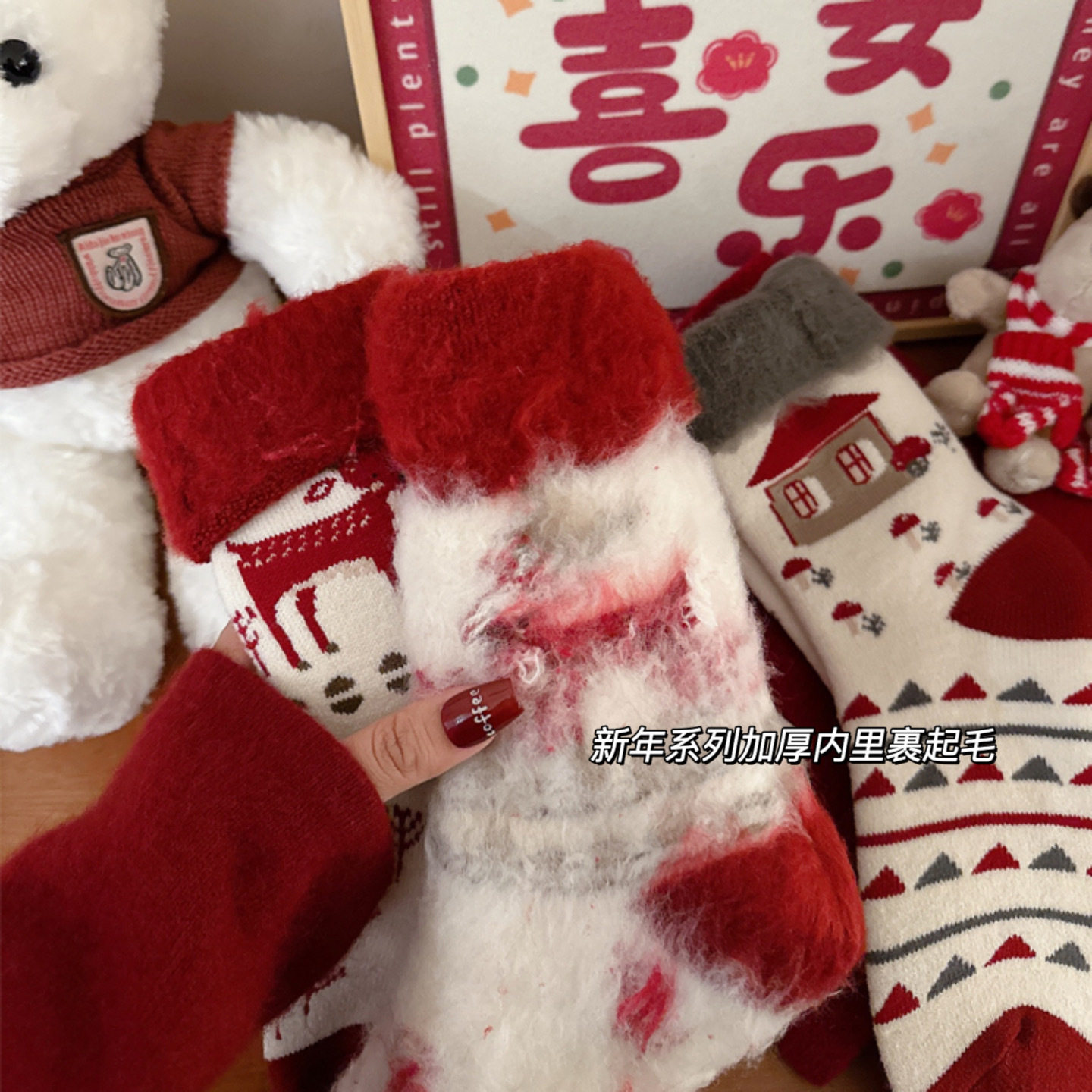 📚 一双过冬加厚拉绒外穿女士新年圣诞袜子红色本命年袜保暖舒适柔软